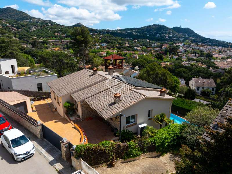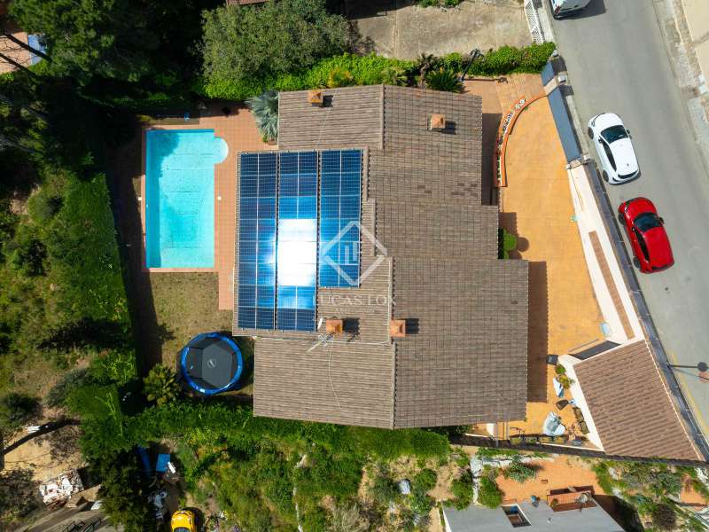 The house is located in a quiet area near the centre of Cabrils. The bright 730 m² plot faces southeast and offers plenty of sun and privacy. The house is in very good condition, has been renovated, and is very well maintained. This year, improvements were made with solar panels and aerothermics, which makes the house's energy costs close to zero. With a constructed area of 501 m², all the interior spaces are very spacious. The property is very comfortable and is spread over three levels, with two entrances. On the main floor is the night area with 5 bedrooms, 2 of which have private bathroom. The floors in this area are parquet. The main bedroom is generously sized and features a fireplace, a dressing room, and access to a covered chill-out terrace with sea views. This floor also houses the utility room and another bathroom. On the lower floor, there is a spacious living-dining room with a fireplace and direct access to a covered terrace with sea views. From there, you can access the garden and pool. This floor also houses the kitchen, an study, a storage room , and a bathroom. The pool and garden area includes a summer kitchen, a bathroom , and a terrace with electric awnings. The garden is well-kept and requires little maintenance. The pool is chlorine-based and has a system for heating the water. The property also has a garage with capacity for 1 car, motorcycles and a storage room. The windows are made of aluminum and PVC, the heating is mains gas, and the electrical panel was recently renovated. This fantastic house is ready to move into and enjoy. Contact us for more information or to arrange a visit.