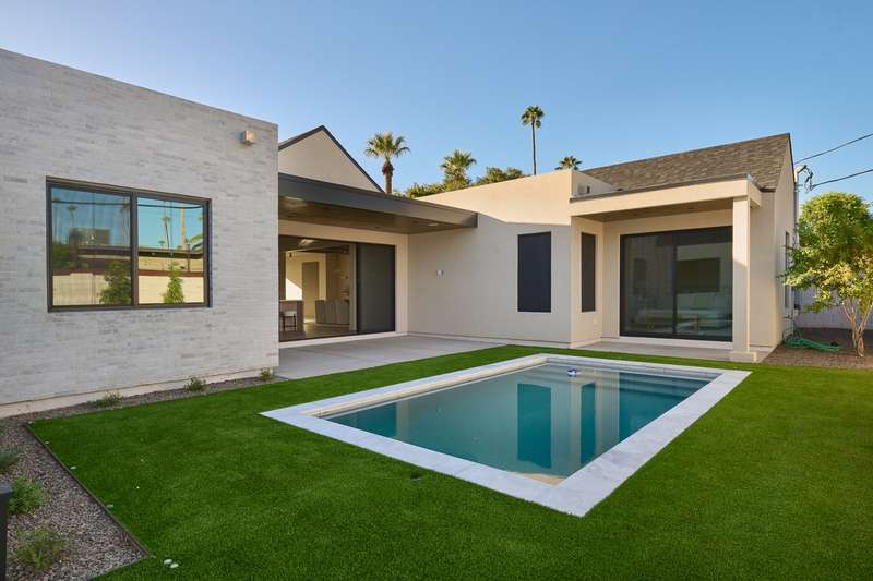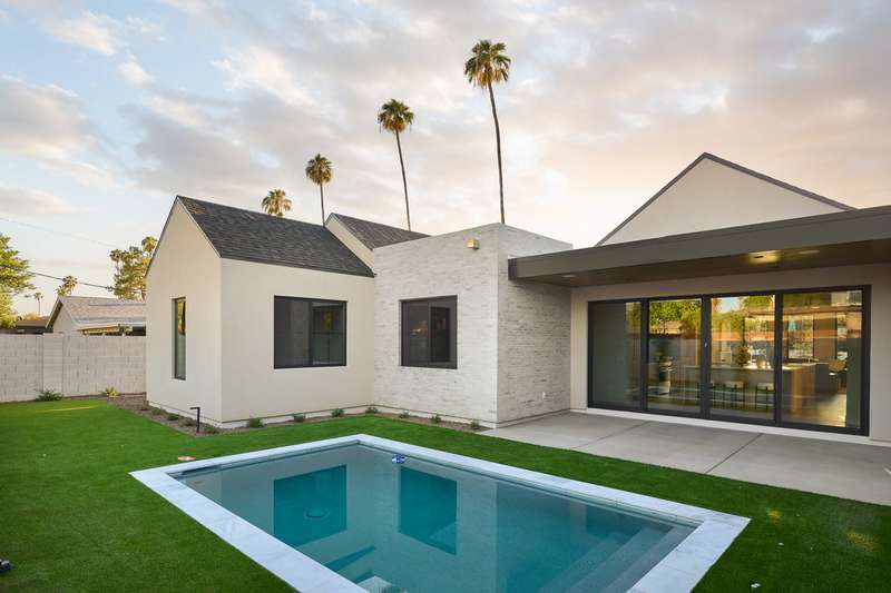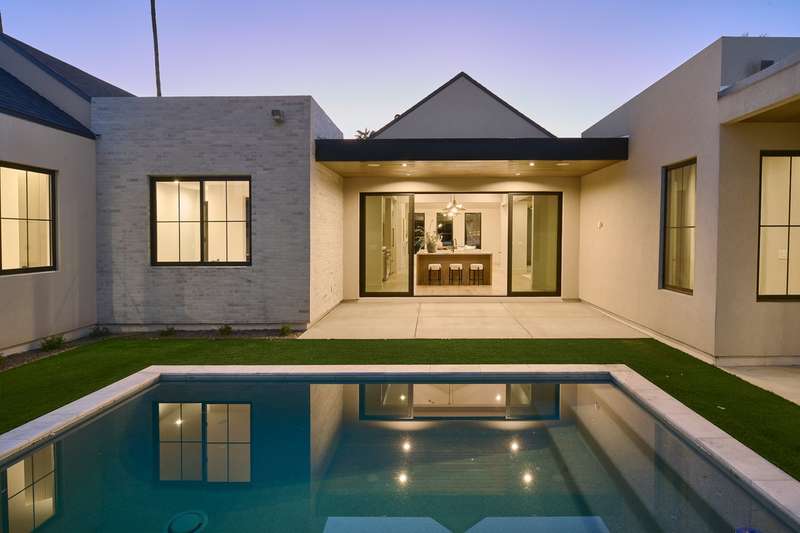 Welcome to life in Arcadia Lite--a neighborhood rich in charm and vibrancy; a place where neighbors wave hello and where every road feels familiar. Tucked among tree-lined streets, this brand-new designer residence redefines luxury living in one of Phoenix's most desirable neighborhoods. From the moment you arrive, the home captivates with timeless architecture, modern sophistication and thoughtful craftsmanship built to impress at every turn. Inside, vaulted ceilings and warm, refined finishes create a setting as elegant as it is comfortable. A dedicated office gives you the quiet you need, while a bright, versatile flex room offers space to workout, play, or unwind. At the heart of it all lies the gourmet chef's kitchen--anchored by dual oversized islands and professional-grade appliances