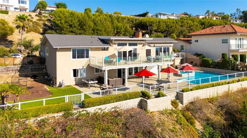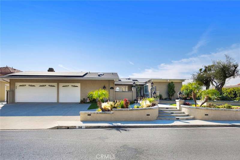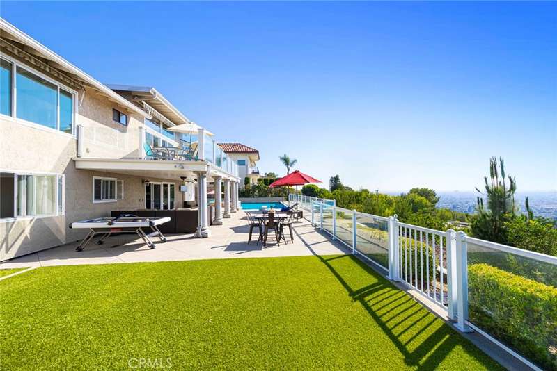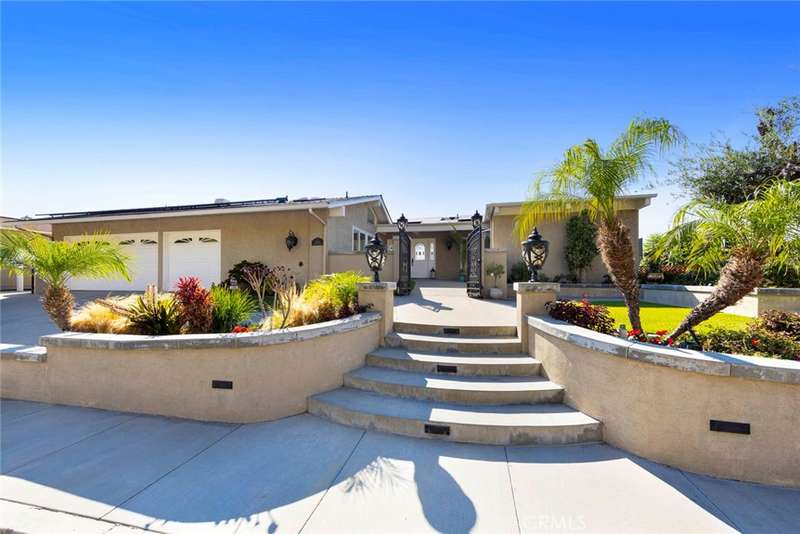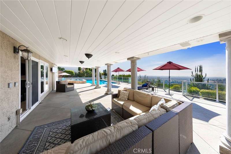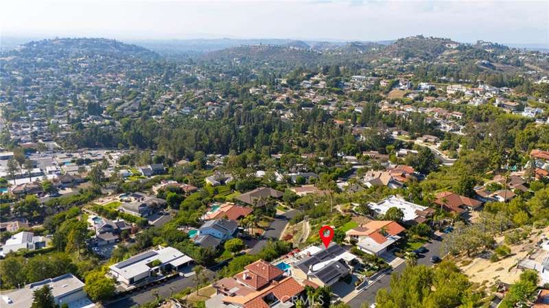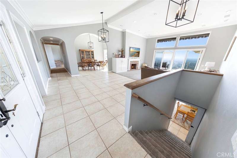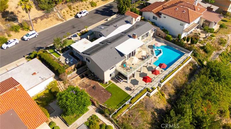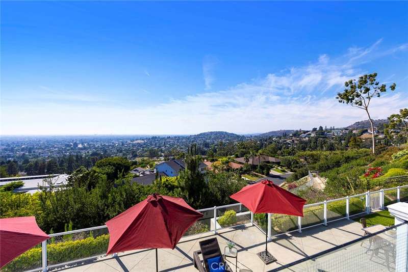 Stunning Single Story 180 Degree Unobstructed View Home with Additional Multigenerational Living Quarters on the bottom level in Prestigious North Tustin Foothills/ Lemon Heights. LOCATION HIGHLIGHTS: * Located in the highly desirable North Tustin Foothills in the Lemon Heights community * Situated on a quiet, single-loaded street * Directly above Arroyo Elementary, Hewes Middle, and Foothill High * Incredible 180 Degree Unobstructed panoramic views: * Direct site lines to Angels Stadium, Disneyland, Downtown LA, and Hollywood Sign (on clear days) * Catalina Island and San Pedro Port to the west * San Bernardino Mountains to the east * Close to scenic Peter's Canyon Loop Trail. HOME FEATURES: * 4 Bedrooms | 3 Bathrooms | 3042 total Sq Ft | 0.43 Acres (2096 Sq Ft upper level and 946 Sq Ft lower level) * Three fireplaces (2 upstairs and 1 downstairs) * 3-car attached garage * Salt Water Pool & Jacuzzi * Newer roof, solar system, and main electrical panel upgrade (2023) * Tiered retaining wall (2022) * $400,000 in structural upgrades & maintenance (2016-2025). UPSTAIRS (MAIN LIVING LEVEL): * 3 Bedrooms + Office | 2 1/2 Bathrooms * Spacious living & dining rooms with large sliding glass doors opening to full-width exterior view balcony * Upstairs balcony 598 Sq Ft * Primary bedroom with newly remodeled ensuite bathroom (2021) * Two secondary bedrooms share a full shower/tub bathroom * Private office with fireplace and direct balcony access (Could be another bedroom) * Laundry area in garage and Tuff Shed for storage. DOWNSTAIRS: (Additional living quarters for multi-generational living, rental or In-Law Suite): * 1 Bedroom | 1 Bathroom with private entrance * Includes living, dining, kitchen (electric cooktop), fireplace, and electrical stackable laundry * 540 Sq Ft covered outdoor living area * Additional outdoor storage unit * Direct access to pool and jacuzzi * Ideal for rental income.