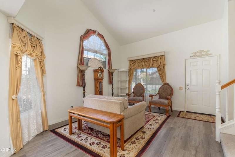 Welcome to this stunning two-story home in the highly sought-after Windrose Pointe neighborhood of North Oxnard--perfect for those who love to entertain and enjoy comfortable, coastal living. This delightful home offers 4 bedrooms, 3 bathrooms, over 1,900 sq ft of living space on a 5,900+ sq ft lot, plus an attached 3-car garage and excellent curb appeal. As you step inside to reveal an inviting formal living room with vaulted ceilings, large windows with plenty of natural light, wood-like vinyl flooring that opens to the formal dining area with a large window overlooking the backyard. The heart of the home is the beautifully upgraded kitchen, showcasing quartz countertops, stainless steel appliances with newer dishwasher, an abundance of cabinet space, and a breakfast bar area that opens to the family room area with a lovely brick fireplace and mantle and a door that leads to the nice backyard. Step outside to a private backyard with outdoor sheds for extra storage and a fenced dog run. A bedroom and full bathroom are conveniently located on the main level perfect for guests or multi-generational living. The upper level features a spacious primary bedroom complete with an en-suite bath, double sinks, and a walk-in closet. Two additional bedrooms and a full bath provide ample space for family or guests. Additional highlights include an indoor laundry area for added convenience and window shutters or coverings for privacy and light control. Throughout the home, wood-like vinyl