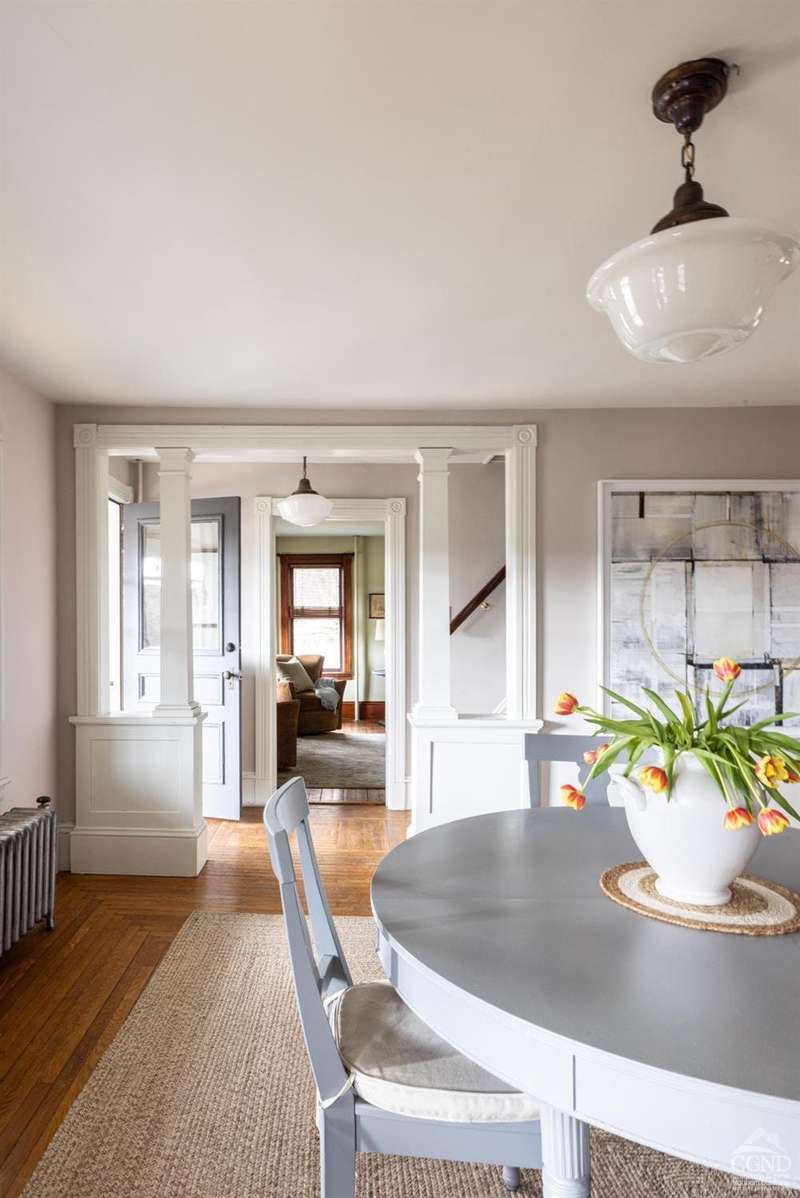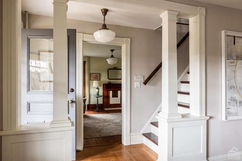 Welcome to VonGal House, a distinctive live-work property in the Hudson Valley that combines a beautifully maintained 1901 Victorian home with a versatile two-story carriage studio.Built in 1901, this home exudes historic charm with original details, including a rocking-chair porch, gleaming hardwood floors, intricate moldings, porcelain door knobs, and an ornamental fireplace that anchors the living space. The property offers flexibility as a primary home with live-work space, and rentable capabilities including a separate guest suite and carriage studio. The current layout offers three bedrooms and two baths, complemented by an adjoining guest suite with its own entrance. This configuration provides flexibility for a private rental and can be reimagined to include a first-floor primary suite if desired. The property also features a two-story street frontage carriage studioformerly a gallery and cobbler's workshopoffering endless possibilities as an office, studio, or creative business space with commercial potential. Ample on-site parking increases practicality.The grounds are a gardener's dream, featuring perennial plantings and charming hardscaping that enhance the property's natural beauty. An original outhouse adds a whimsical touch, now serving as a quaint potting shed. Perfect for artists, makers, and entrepreneurs, this unique property blends historic charm with modern adaptability. It's conveniently located just 10 minutes from the Taconic Parkway, steps from the beloved Ancram Little Store, 25 minutes to Hudson, and 15 minutes to both the Connecticut and Massachusetts borders.