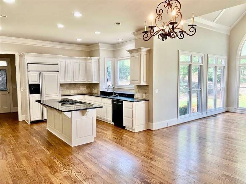 Wonderful four sides brick estate home on almost one acre lot in prestigious Sugarloaf Country Club, a guard gated community. Inviting open floor plan. Gourmet kitchen with creamy white cabinets and granite. Great room with coffered ceiling and fireplace flows to sunroom making for a delightfully open floor plan. All main floor areas freshly painted in modern color palette! Luxurious master suite upstairs with fireplace. Large secondary bedrooms with ensuite bathrooms and walk-in closets. Awesome terrace with gleaming hardwoods, entertaining bar with brick wall, billiards rm, media room, full bedroom/bathroom, bonus room and more. Fabulous, lush, large backyard. House has been freshly painted.