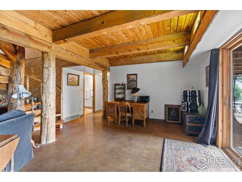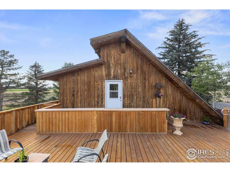 Nestled on a 5.75-acre parcel, this extraordinary home offers unmatched privacy and stunning views of the Front Range, including Longs Peak and the foothills. Surrounded by 120+ acres of open space, a reservoir to the south, and Boxelder creek and open space to the west, enjoy serene living amidst nature. The property features gorgeous mature landscaping and is adjacent to Mountain Vista Golf Course, perfect for outdoor and golf enthusiasts. This 3-bed, 3-bath home exudes personality and charm, with solid construction and open vaulted ceilings that create a spacious feel. A huge deck provides the ideal space for entertaining or relaxing while taking in the breathtaking scenery and the sounds of Boxelder Creek. Experience the perfect blend of seclusion, natural beauty, and distinctive design in this one-of-a-kind retreat.