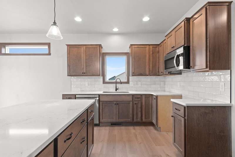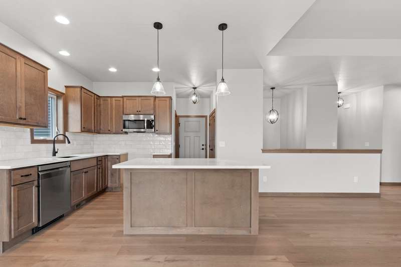 Another high-quality new construction by Van's Construction of Appleton. This is the Ashton model and has never been built in the De Pere area before! This home features 3 bedrooms, 2 baths, spacious living room that opens to the kitchen/dinette that offers maple cabinets, quartz countertops, tile backsplash and center island. The primary suite has a tray ceiling, large walk-in closet, private bath with double sink vanity. 1st floor laundry, custom trim package and 3 panel doors. Egress lower level. Brick/Vinyl exterior. 3 car garage.
