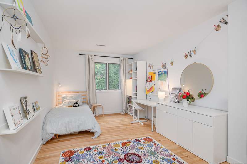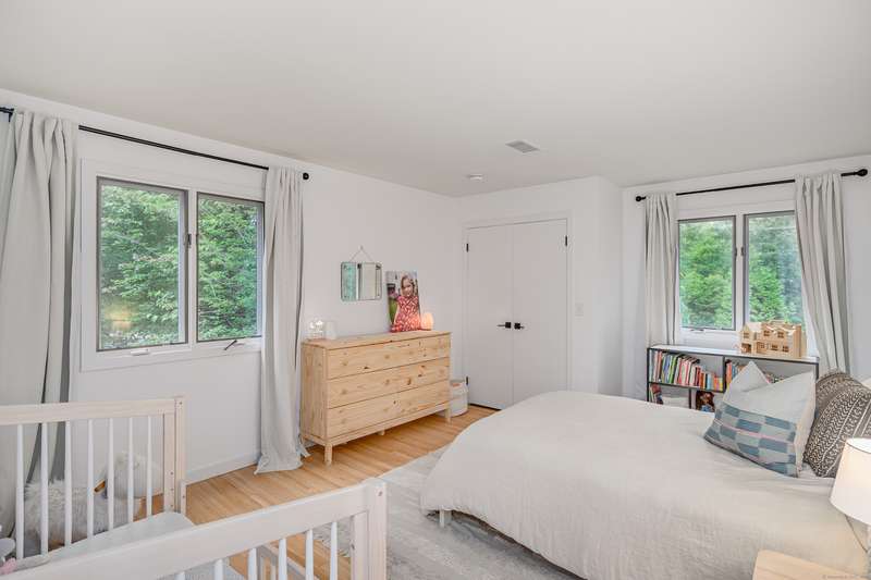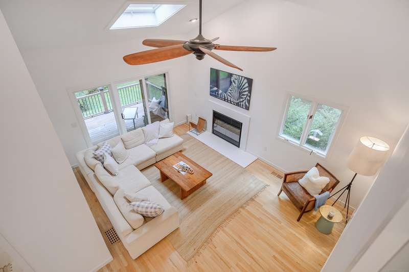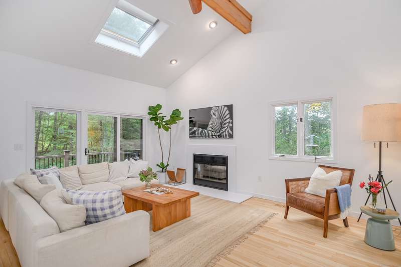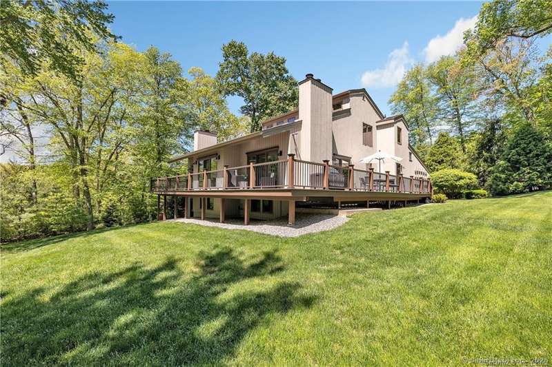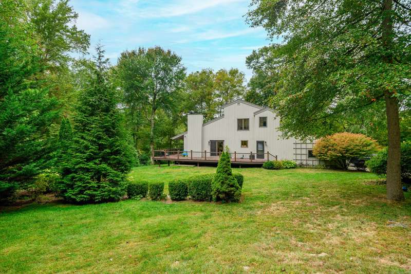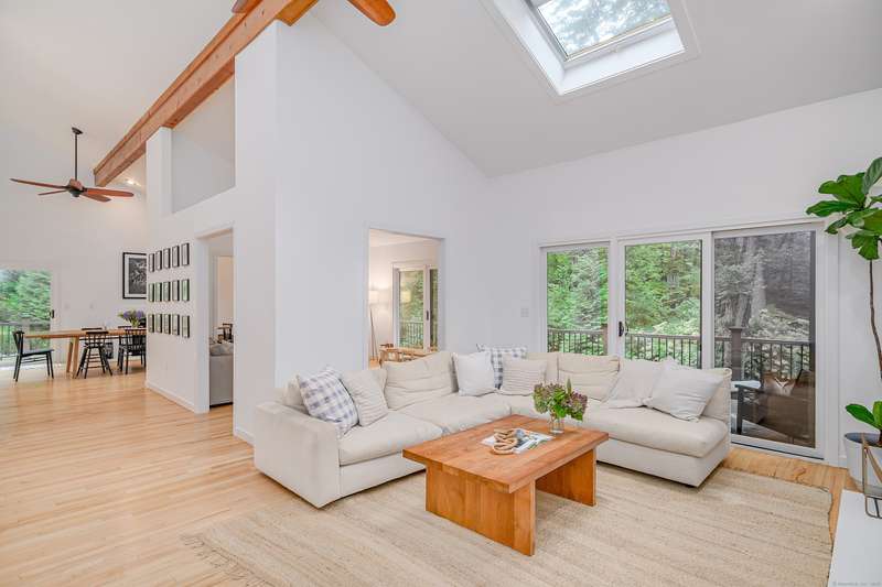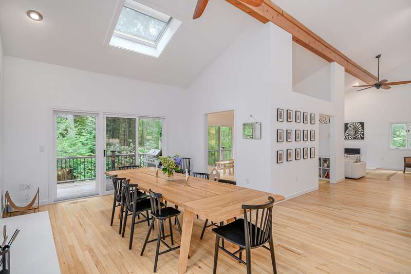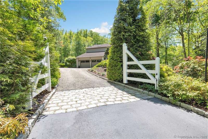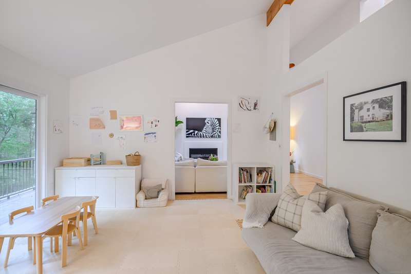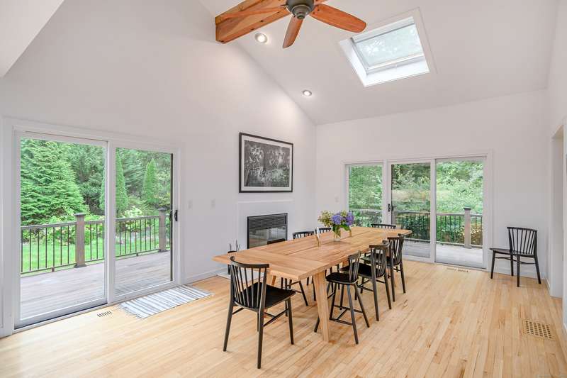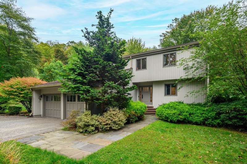 Welcome to a stunning blend of contemporary and Colonial architecture featuring the "Scandifornia" aesthetic-where Scandinavian simplicity meets California warmth. Set on over two acres of sprawling, private grounds in highly sought-after lower Weston, this light-filled contemporary Colonial creates an effortless, elegant, and cozy atmosphere. Every room in this happy home is bright and airy, designed with clean lines, a neutral palette, and thoughtful modern updates. A beautifully updated custom kitchen, flows seamlessly into the dining room with fireplace, the family/playroom, and the spacious living room with 2nd fireplace. All main living areas open through sliders to a new composite wraparound deck, ideal for indoor-outdoor living and entertaining. Rounding out the first floor is a versatile bedroom, adjacent fully updated bath and recently updated mudroom/laundry room with built-ins and half bath. Upstairs the primary suite boats radiant-heated floors, soaking tub, frameless glas