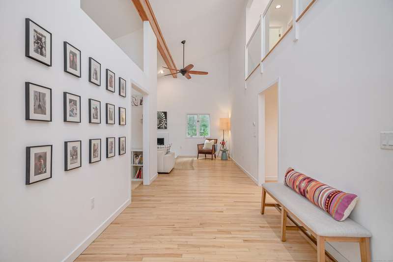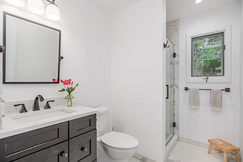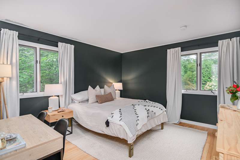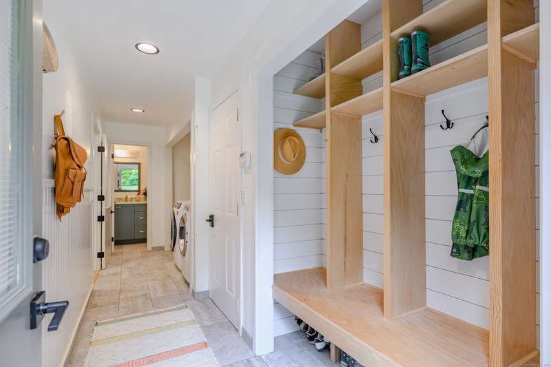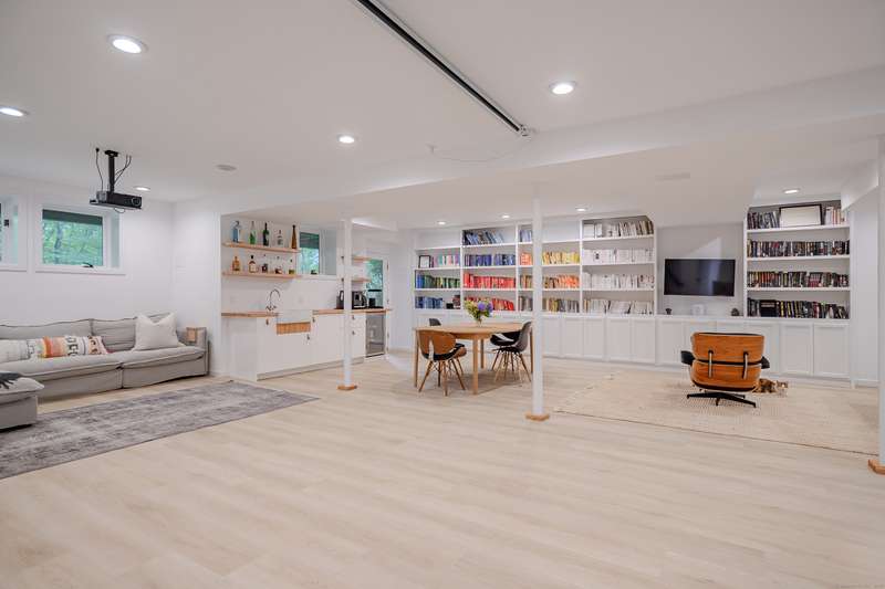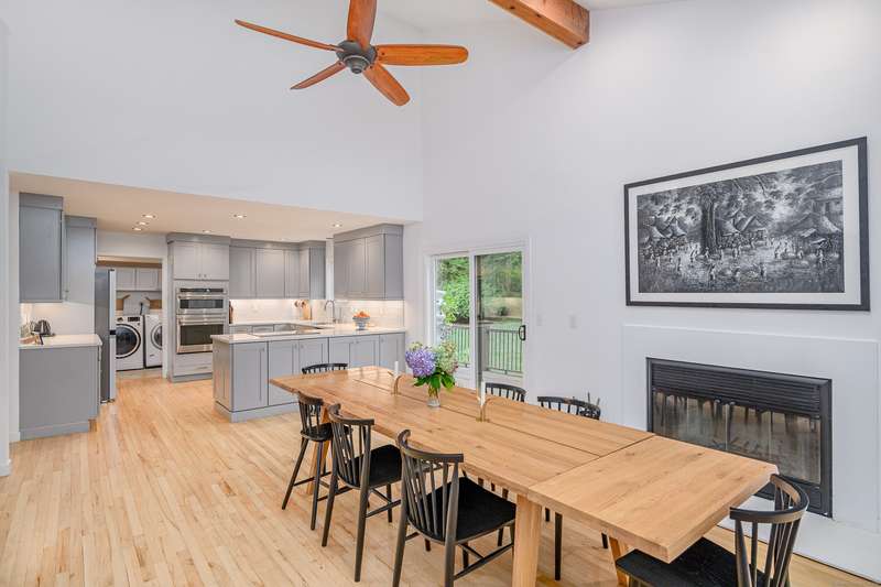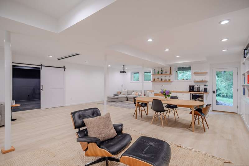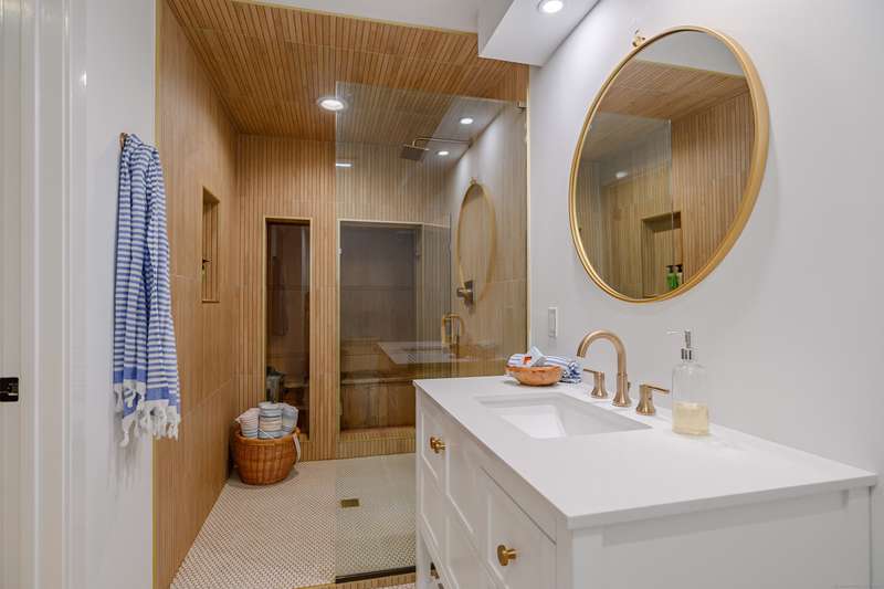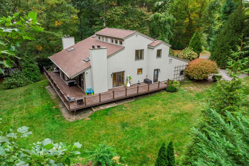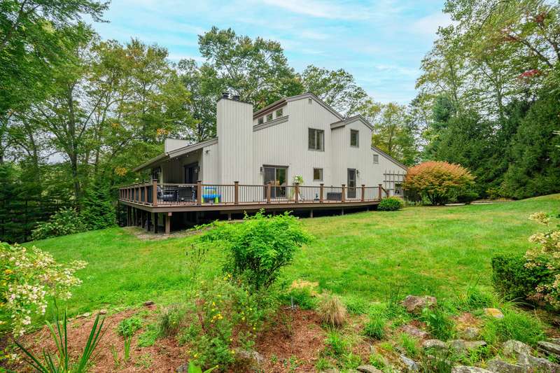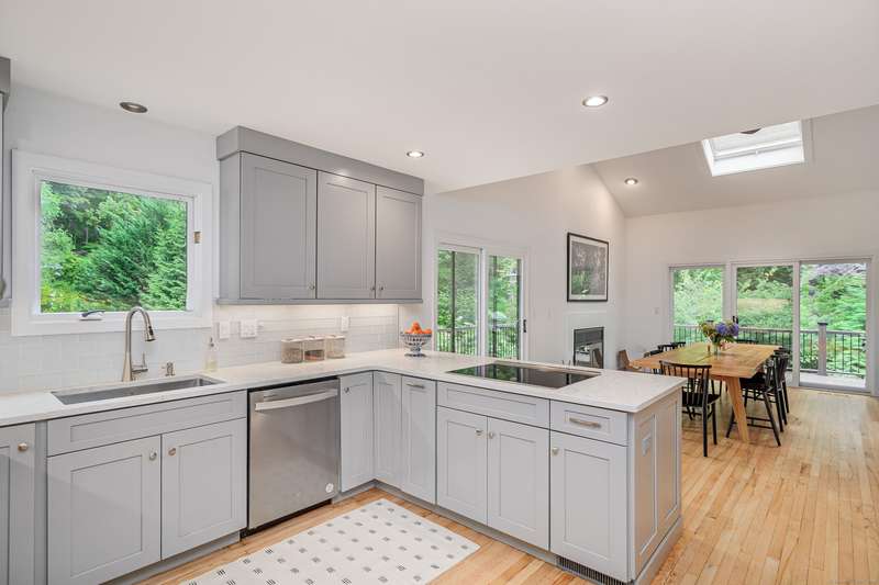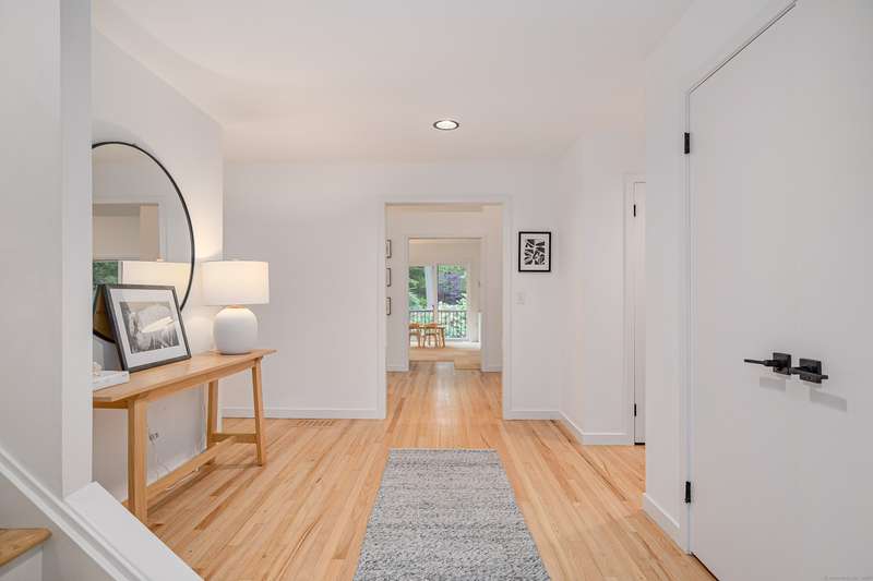 Welcome to a stunning blend of contemporary and Colonial architecture featuring the "Scandifornia" aesthetic-where Scandinavian simplicity meets California warmth. Set on over two acres of sprawling, private grounds in highly sought-after lower Weston, this light-filled contemporary Colonial creates an effortless, elegant, and cozy atmosphere. Every room in this happy home is bright and airy, designed with clean lines, a neutral palette, and thoughtful modern updates. A beautifully updated custom kitchen, flows seamlessly into the dining room with fireplace, the family/playroom, and the spacious living room with 2nd fireplace. All main living areas open through sliders to a new composite wraparound deck, ideal for indoor-outdoor living and entertaining. Rounding out the first floor is a versatile bedroom, adjacent fully updated bath and recently updated mudroom/laundry room with built-ins and half bath. Upstairs the primary suite boats radiant-heated floors, soaking tub, frameless glas