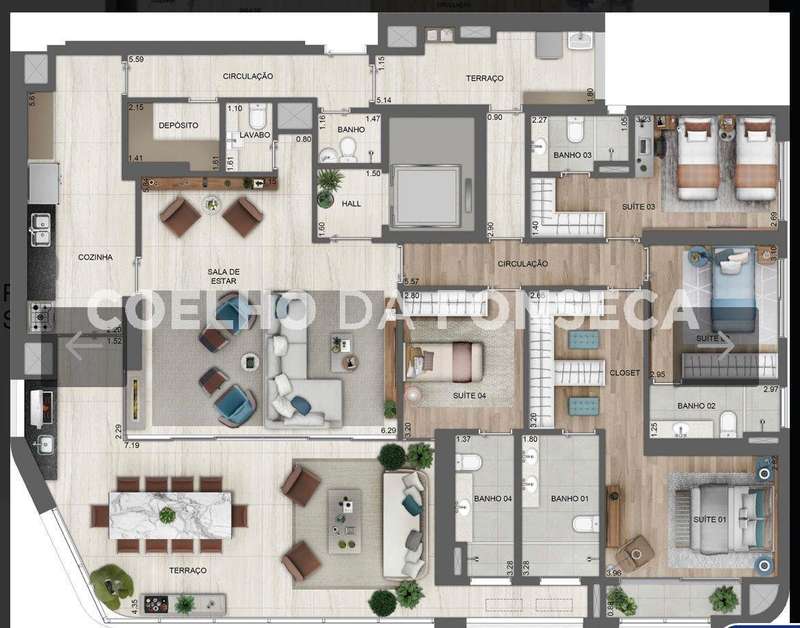 Apartamento no bairro Chácara Santo Antônio com 227m² área privativa/útil, 4 dormitório(s), 4 suíte(s), 4 vaga(s), 5 banheiro(s), churrasqueira.