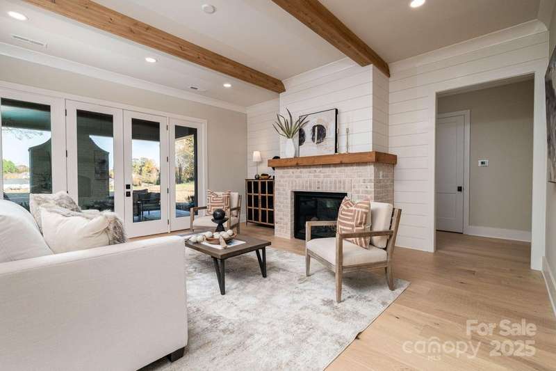 Discover the timeless elegance of this new construction, European-inspired home, perfectly situated in a serene country setting with sweeping farmland views, just outside of city limits! Masterfully designed and built by a well-respected, local builder, BowerTraust, this home offers both sophistication, comfort, and modern luxury. Historic details include 100+ year old beams from Loray Mill, caringly repurposed as a fireplace mantle and a drop-zone bench! You'll love the 3-car garage with ample space for vehicles, storage, and good old "tinkering"! Statement ceilings in the open great room and primary suite retreat feature cedar-beam accents, and are SURE to IMPRESS! A chef's kitchen with a gas range/oven, oversized walk-in pantry with solid shelving and a rolling accent door provides effortless entertaining and organization. The expansive laundry room with a deep soaking sink offers additional storage opportunities for convenience and efficiency. The upper-level bonus room/4th bedroom features a full bathroom- an ideal space for guests, home office, home theater, or recreation space! (Don't miss the HUGE walk-in attic off of the bonus room!) Entertain your guests while enjoying beautiful farmland views from the rear patio, with a welcoming, masonry, wood-burning fireplace, a dedicated grilling porch, and vaulted ceilings with STUNNING wood accents. Located just minutes from Lake Wylie... you'll love the rural tranquility and peaceful charm of country living! Whether you're entertaining in the great room, savoring sunrises from the porch, or enjoying weekends on the lake, EVERY detail of this home and location have been crafted to elevate YOUR lifestyle. Make your appointment today and make it YOUR NEXT HOME!