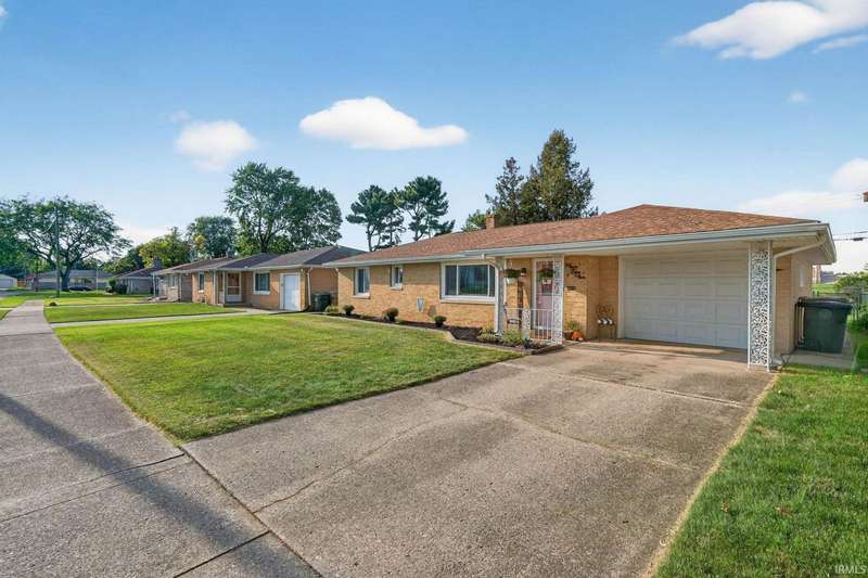Prepare to be impressed by this beautiful mid-century, move-in ready all-brick ranch nestled in a quiet south side neighborhood. Step inside to a spacious and inviting living room that flows seamlessly into the eat-in kitchen?complete with a window overlooking the large, fully fenced backyard. Enjoy added privacy with no rear neighbors as this property backs up to Monroe School, offering peaceful views and a quiet setting. The home features two bedrooms with cedar-lined closets and a recently updated bathroom. You'll appreciate the convenience of a large main-floor laundry room and an extended garage that provides plenty of additional storage. The exterior is beautifully landscaped, offering curb appeal you'll love coming home to. Recent updates include new HVAC (2024), new roof (2023), new water heater (2022), newer garbage disposal, replacement vinyl windows and fresh interior paint through the home. Ideally located just minutes from shopping, dining, schools, and easy bypass access. Don't miss this opportunity to own this charming home!