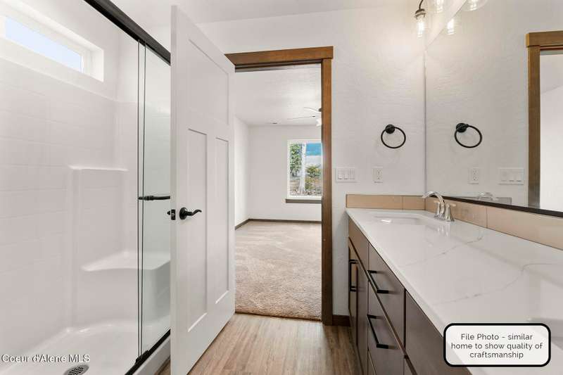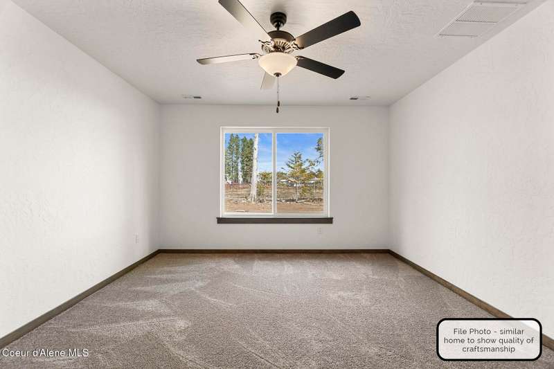 Under construction. 3rd Bay garage is 12 wide and 30 feet deep exterior measurement with a 10X10 garage door with opener, gas fireplace, quartz countertops throughout, covered front and rear patio, vaulted ceilings, 95% gas furnace, Nest thermostat, tankless gas water heater, gas to rear patio, gas range, LVP flooring every where except bedrooms and closets, garage door opener, garage man door and front yard landscaping and sprinkler system. Return home to style and elegance every day when you make this beautiful abode your own. There's an impressive 1,437 sqft of living space with a bright and open-plan layout that invites you to rest and relax. The owner's suite enjoys a private position, complete with an ensuite bath and an abundance of closet space. The two guest bedrooms are serviced by the hall bath. When friends drop by, you can flow freely from the living room, into the dining room and the kitchen beyond. A breakfast nook set under a statement chandelier light.