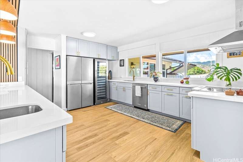 Newly renovated! Spacious, single-level, indoor-outdoor Hawaiian-style home featuring manicured garden, Japanese tile roof and interior walls of teak and koa wood. This Papu Circle home offers 4 bedrooms and 3 baths. There is a luxurious open chef's kitchen, generous living room with magnificent Koolau Mountain and Diamond Head views from a large living room picture window, dining room, family room with enclosed lanai. Recent upgrades of $300K+ include new windows, new kitchen, new bathrooms, 5 new split A/C units, fresh interior paint, new ceiling fans, new kitchen, bathroom and enclosed lanai flooring, and new vinyl fence. Ideally located near the world-famous Shangri La estate and minutes from Diamond Head Beach, famous surf spots, Cromwell’s Beach, Triangle Park, Kapiolani Park, Outrigger Canoe Club, and Waikiki. Enjoy an enchanting blend of privacy and convenience in this beautifully refreshed island retreat, fully fenced/gated. *Roof tiles were specially ordered from Japan and installed by Japanese craftsmen. Actual interior square footage may differ from tax office information. *Actual interior square footage, bedrooms & bath may differ from tax office information.