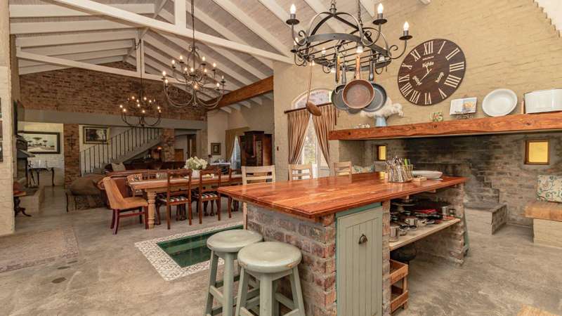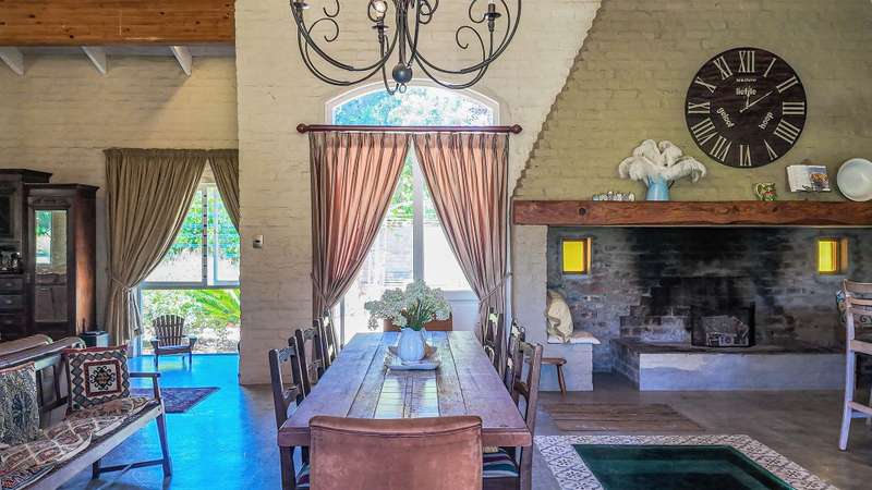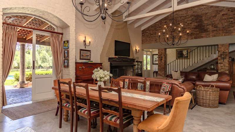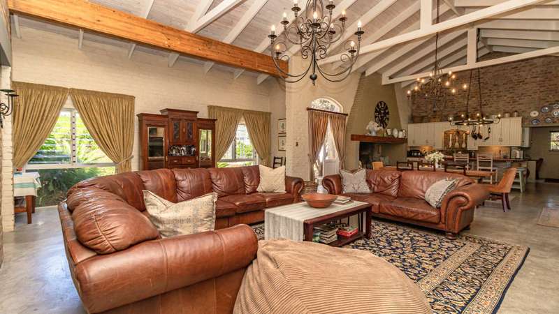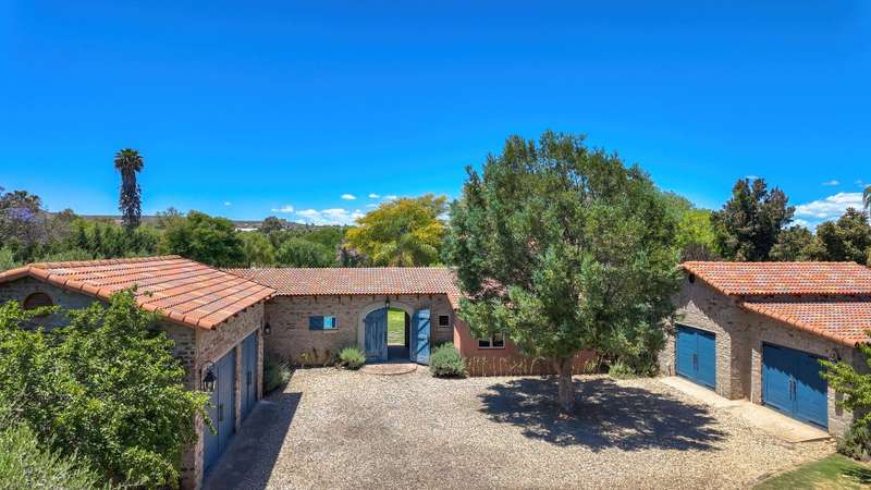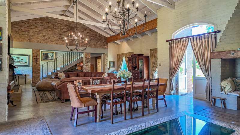 A RARE FRENCH COUNTRY ESTATE IN THE HEART OF THE KLEIN KAROO Welcome to a property that feels more like a destination than a home. A grand 800 m?? French inspired estate set in the striking landscapes of South Africa?ÇÖs Klein Karoo. Sunlit interiors, sweeping views and a sense of refined calm create a lifestyle that is both luxurious and deeply grounded in nature. The main living space makes a statement the moment you enter. A double volume, open plan layout connects the lounge, dining room and chef styled kitchen into one impressive central arena. Light pours in from every angle and each doorway reveals another place to unwind. Wide patios, shaded terraces and seamless indoor and outdoor flow give you the freedom to entertain on a global scale. The estate offers eight generous bedrooms, six with en-suite bathrooms. Two private guest units, each with a garden, elevate the property into a world class retreat. Ideal for upscale hosting, extended stays or premium rental income. The fifth bedroom can also serve as a private family lounge for added versatility. Only two bedrooms rest on the upper level, both commanding panoramic views of the Swartberg Mountains and the surrounding one hectare smallholding. A charming below floor wine cellar measuring 4 ?Çïx 2 meters provides a refined setting to showcase your collection. This is a property designed for year round enjoyment. Long summer days revolve around the 15 ?Çïx 5 meter pool, while crisp winter evenings gather around the impressive built in fireplaces that anchor the living areas and add warmth with character. Extras that elevate the lifestyle: ?Çó Dam of approximately 40 000 liters ?Çó Three-phase power supply ?Çó Approved gazebo plans ?Çó North facing patio ?Çó Two self-catering guest cottages with air conditioning and fireplaces ?Çó Screed flooring throughout ?Çó Staff quarters ?Çó Storeroom and workshop For international buyers seeking a luxury retreat with soul, space and European charm, this Oudtshoorn estate stands apart. A rare blend of French elegance and South African landscape. Furniture available at an additional cost.