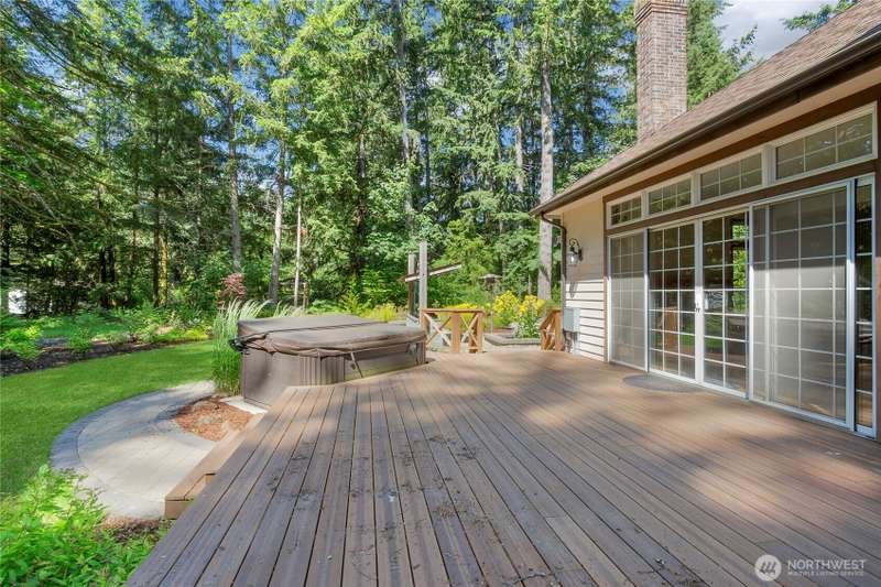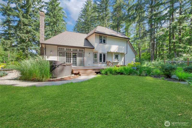 Rare Privacy-NW living-No HOA with a country charm situated on 3 acre retreat, this fenced expansive property w/private gated access to the Chehalis Western Trail has an ever flowing water fall/custom designed landscaped swimmable eco pool. BBQ suite, composite deck, w/outdoor refrigerator/grill,fire pit near a soaking rock beach and hot tub. Room for RVs/Boats. Near everything, JBLM, Providence Hospital, shopping, dining and Tolmie St Pk. The kitchen boasts high end appliances, expansive new quartz countertops and flooring. A heated turret sitting deck, stunning wood floor entrance to open concept, 3 bed 2 & 1/2 bath. 2nd flr vaulted-ceilings, skylights,ceiling fans,2 car garage w/Tesla charge station.See tour video :)