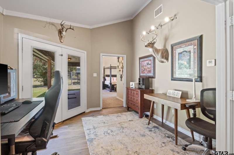 Welcome to your slice of paradise where tranquil country living meets modern comfort! Nestled amidst exquisite landscaping, this stunning house beckons those seeking peace and a connection to nature, while still enjoying the convenience of spacious living. This home boasts four generous sized bedrooms, including a large master suite featuring a cozy sitting area. The bathrooms are thoughtfully designed for comfort and accessibility. Enjoy the durability of the metal roof that not only enhances the home's aesthetic appeal but longevity, giving you peace of mind for years to come. Step outside to your covered full front porch, the perfect spot to relax and watch deer graze as the sun rises. The covered back patio serves as an idyllic entertaining space, whether you’re hosting summer barbecues or enjoying quiet evenings under the stars. The heart of this home is its expansive living room, featuring a charming gas log fireplace that invites warmth and coziness. Built-in storage solutions add functionality, ensuring that your living space remains tidy and organized. The layout flows seamlessly with a breakfast room that encourages casual meals, a formal dining room for special occasions, and a walk-through office area perfect for those who work from home. The laundry room and kitchen, complete with a hidden freezer area, adds convenience to daily chores. With a 2-car carport and an additional carport out back, your vehicles and toys are well cared for. The included storage building provides extra space for tools and outdoor equipment, keeping your property neat and organized. Picture sipping your morning coffee on the front or back porch while watching deer and other wildlife roaming freely. Whether you’re looking for a family home, a peaceful retreat, or a place to entertain friends, this house offers it all and more. Don’t miss your chance to see this enchanting property. Schedule a viewing today and let the beauty of country living sweep you off of your feet!