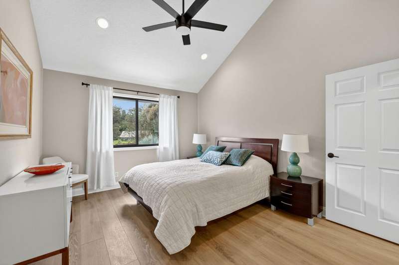 Live, work & play in your own tropical oasis! Nestled on over 1.5 lush acres in the heart of Palm City, this beautifully updated home features 5bed/3.5bath/3car, den & office spacious media room with closet and 2 gym studios. Enjoy over 5400+ sq ft of living space with room for everybody! Upgrades include impact windows and doors throughout, updated open kitchen with large island, quartz countertops and high-end appliances with master suite on main level with own sitting area. Step outside to your private paradise complete with tiki bar, grill & TV, cabana bath & saltwater pool with fire pit, perfect for year-round entertaining and relaxing in the Florida sunshine. Great location close to A-Rated schools, golf, tennis, I-95, Turnpike, fine and casual dining, beaches and PBI Airport.