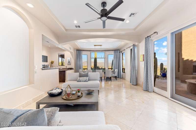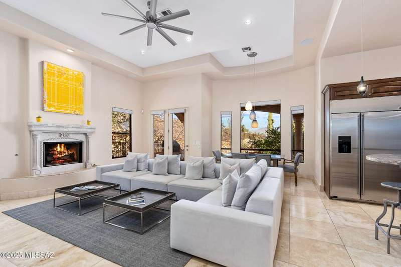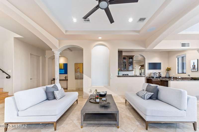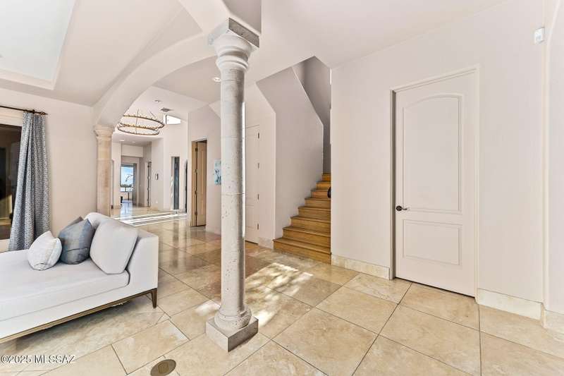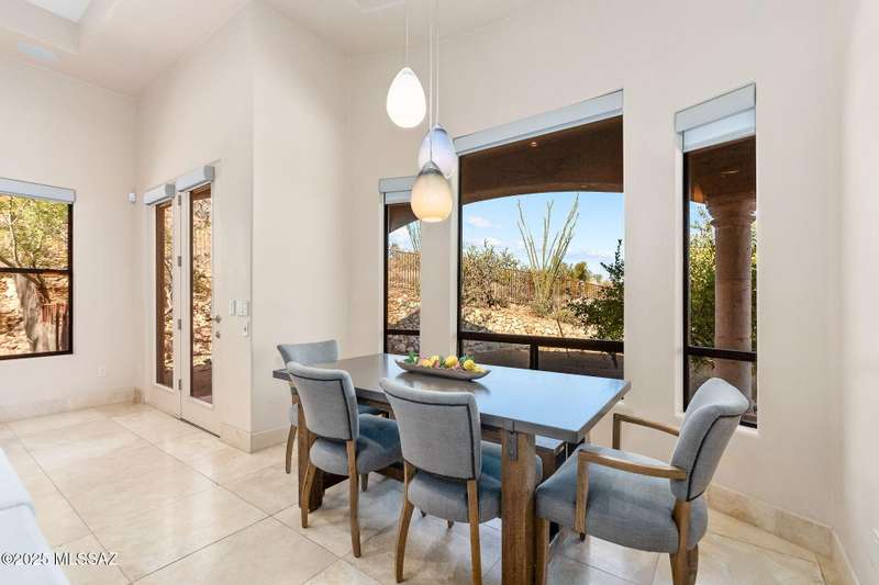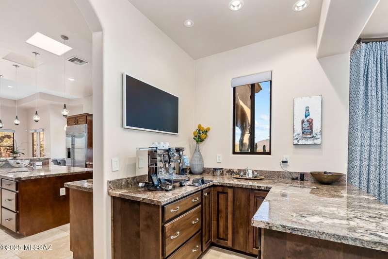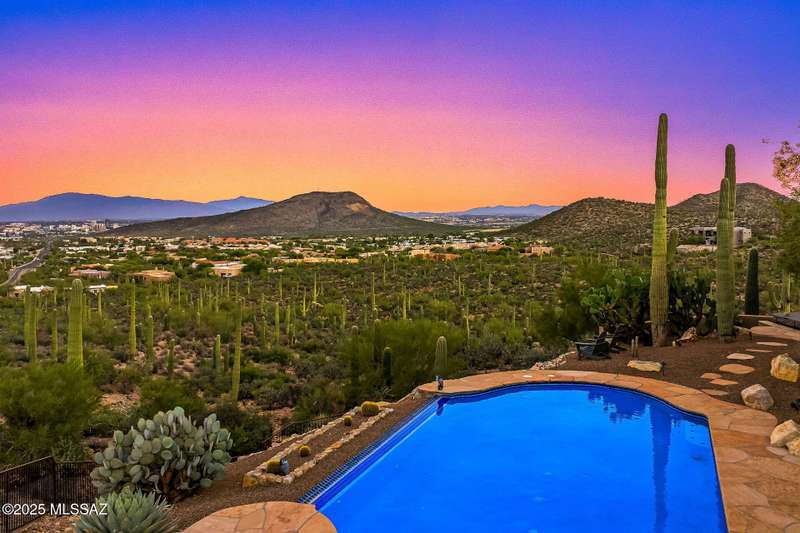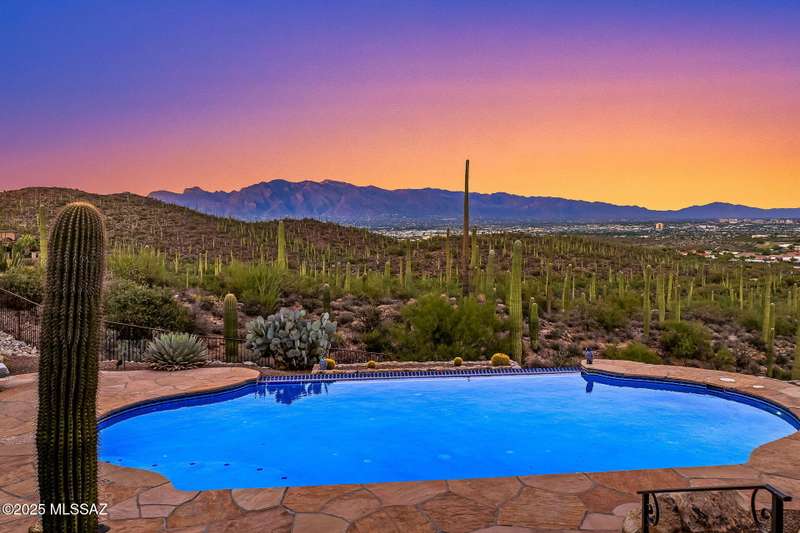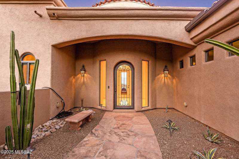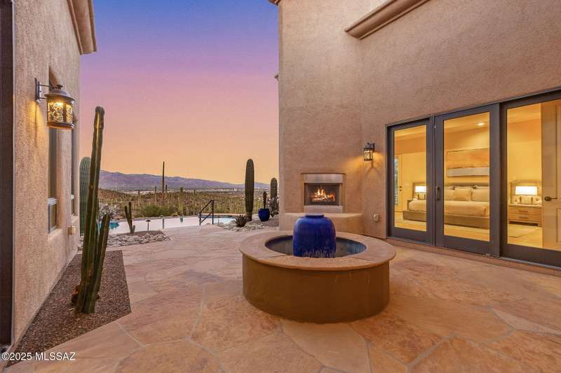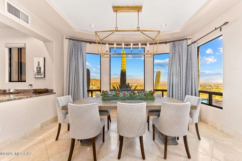 Unmatched Tucson elegance in a prestigious, gated community -- The Estates at Starr Pass -- high above the city in the Tucson Mountains. Set at the base of Saguaro National Park, this exceptional 4,995 sq. ft. luxury residence sits on 3.3 acres of pristine, saguaro-studded desert, offering unparalleled privacy and sweeping views of Tucson's skyline and mountain ranges. Blending modern Southwest design with elegant contemporary functionality, this home exudes warmth, sophistication, and comfort. Step inside to discover soaring ceilings, expansive living spaces, walls of glass, and an open floor plan ideal for entertaining. The dramatic foyer is the center of the home. Just off the foyer, the spacious living room features a formal dining area, and a coffee bar/wet bar combo, providing