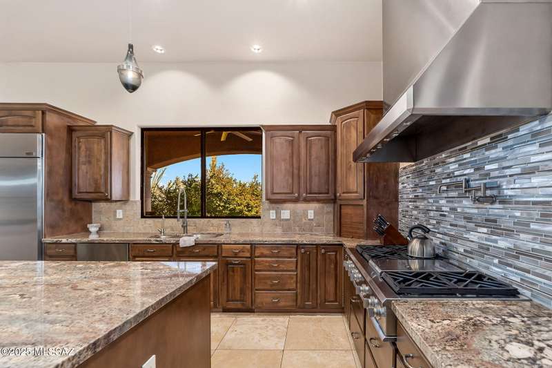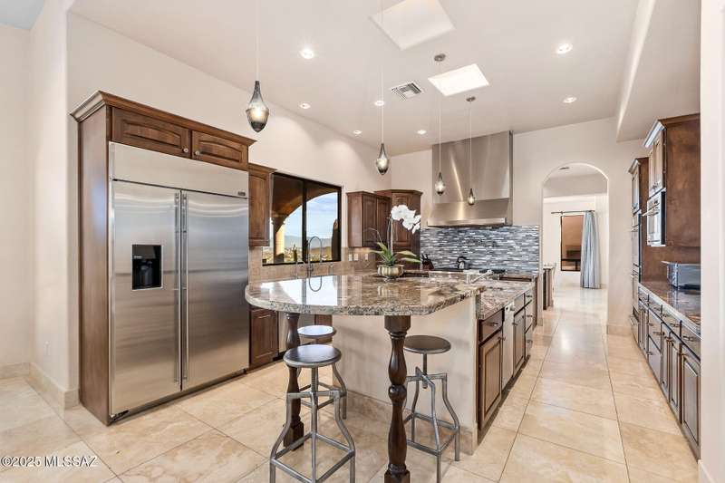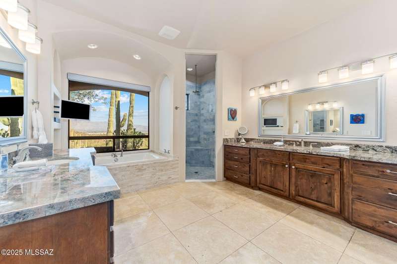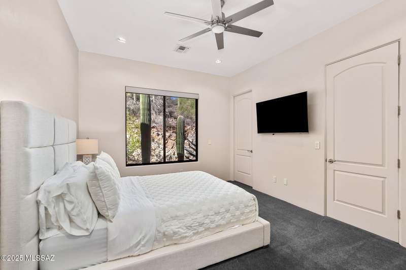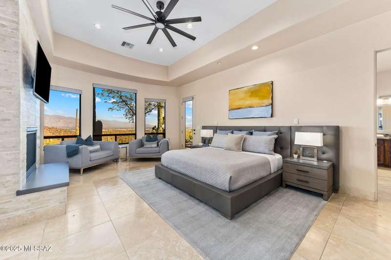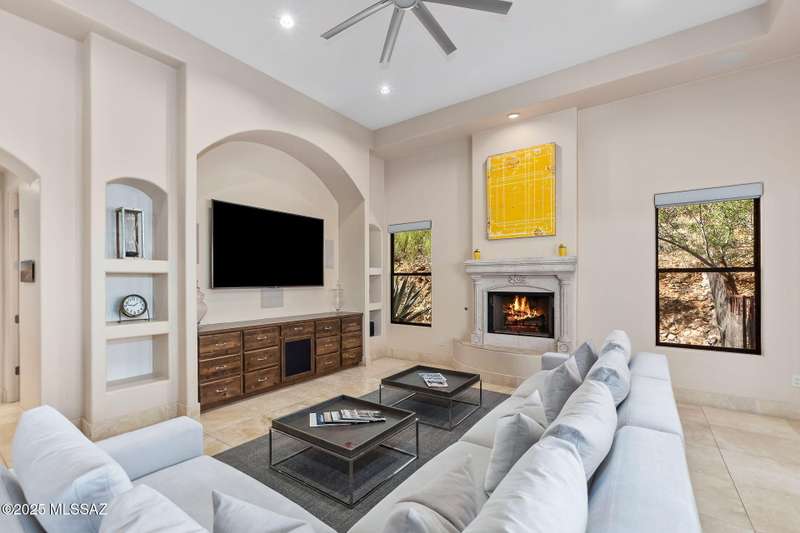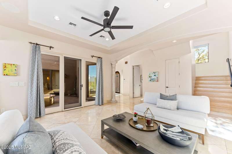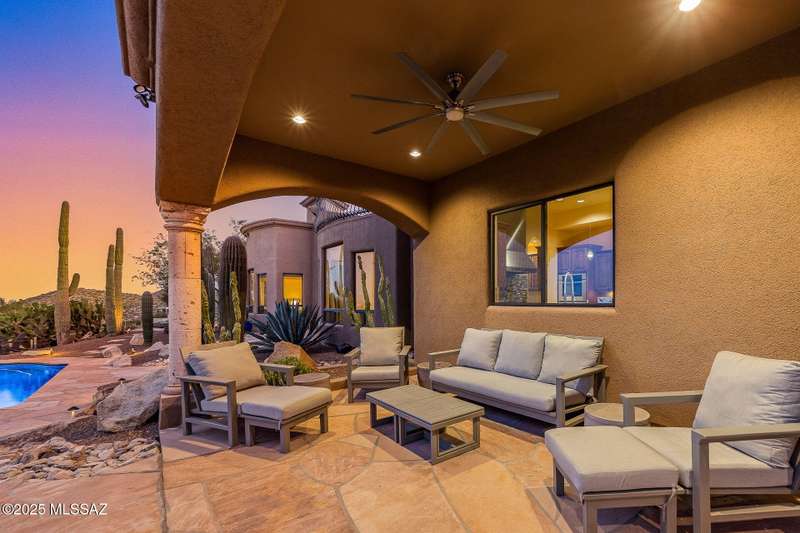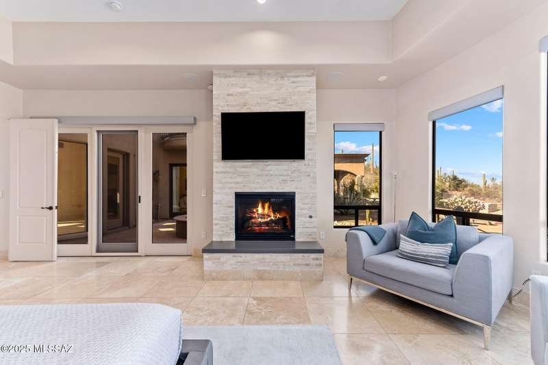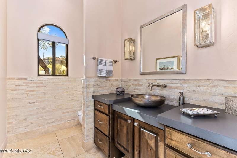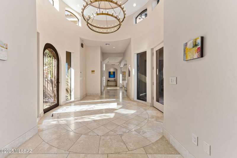 Unmatched Tucson elegance in a prestigious, gated community -- The Estates at Starr Pass -- high above the city in the Tucson Mountains. Set at the base of Saguaro National Park, this exceptional 4,995 sq. ft. luxury residence sits on 3.3 acres of pristine, saguaro-studded desert, offering unparalleled privacy and sweeping views of Tucson's skyline and mountain ranges. Blending modern Southwest design with elegant contemporary functionality, this home exudes warmth, sophistication, and comfort. Step inside to discover soaring ceilings, expansive living spaces, walls of glass, and an open floor plan ideal for entertaining. The dramatic foyer is the center of the home. Just off the foyer, the spacious living room features a formal dining area, and a coffee bar/wet bar combo, providing