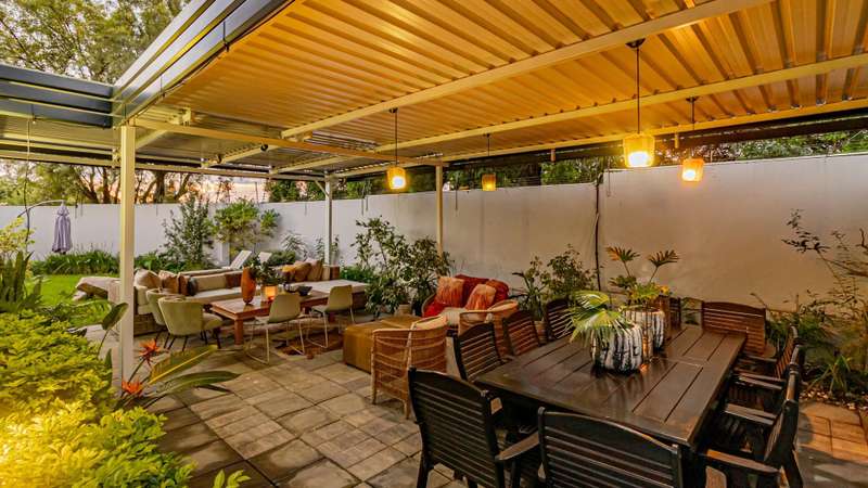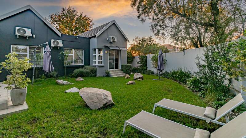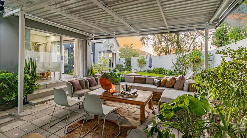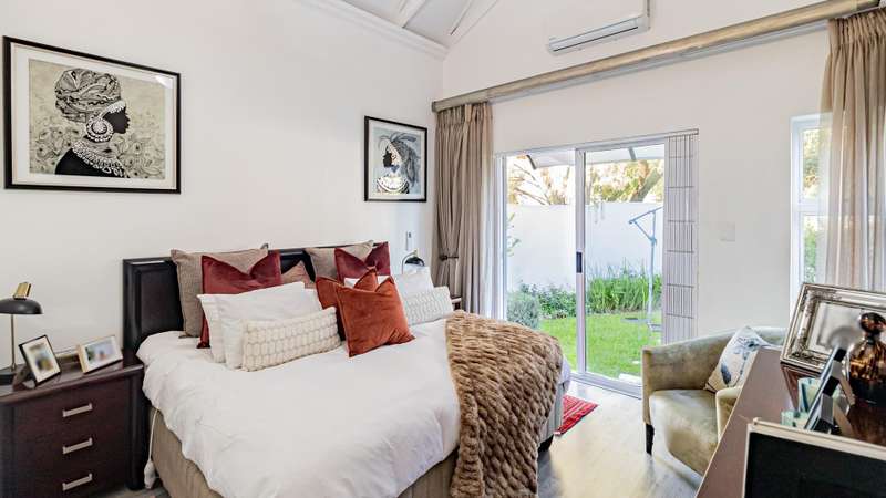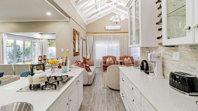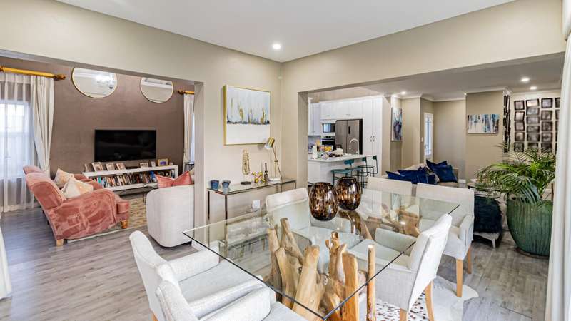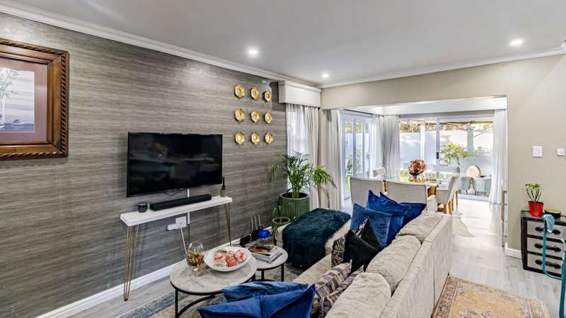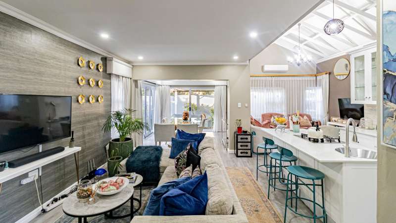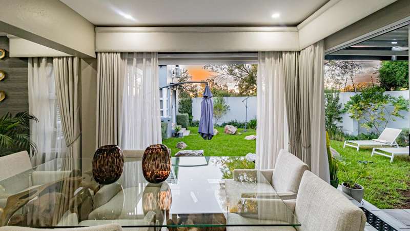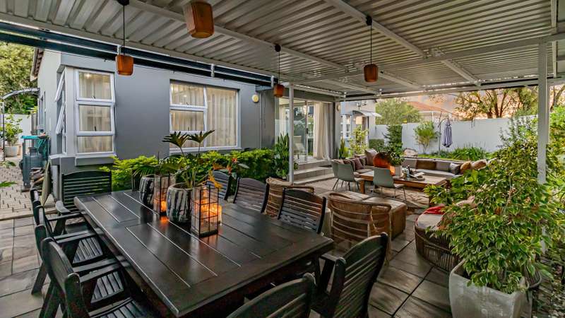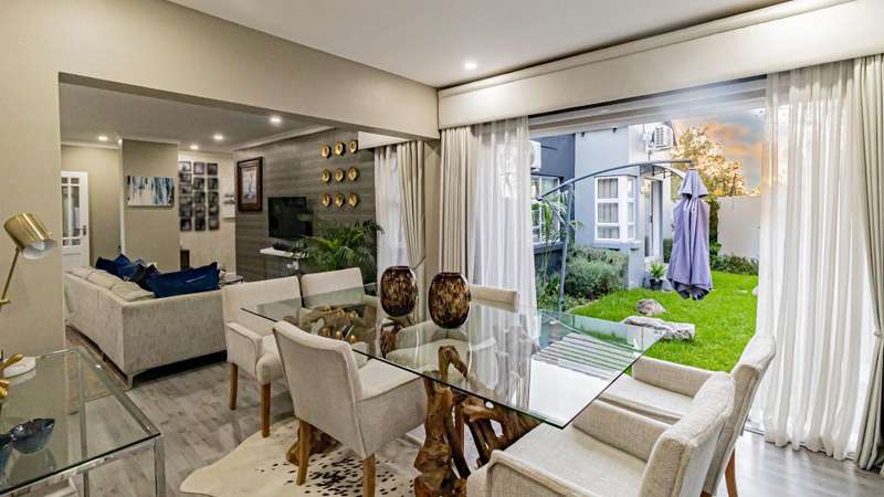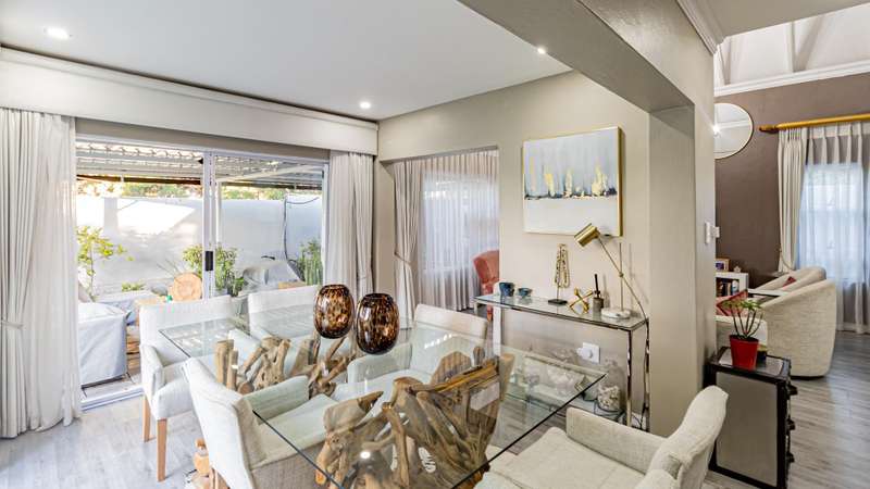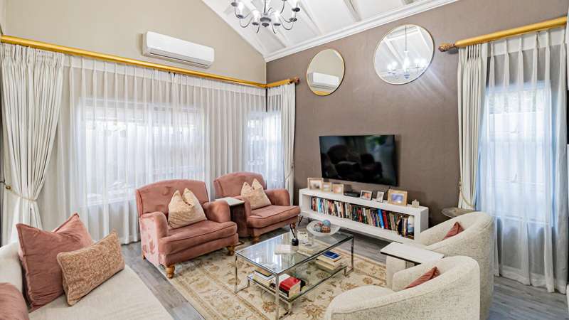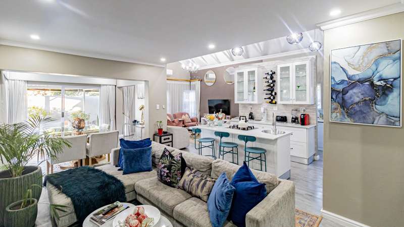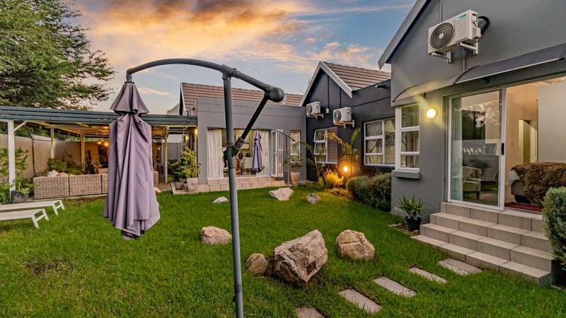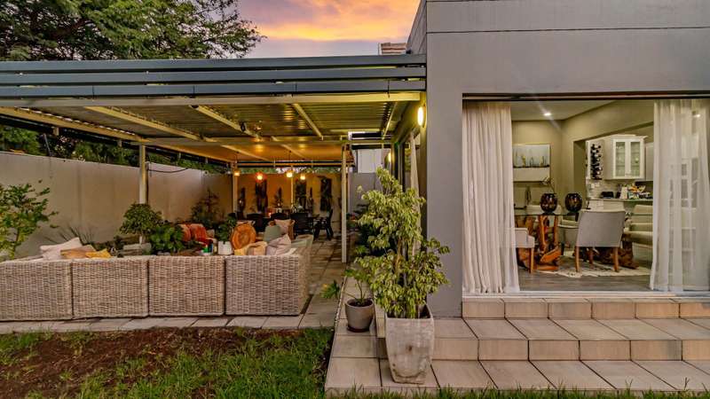 This elegant, high-end home with a separate flatlet is a beautifully designed sanctuary that perfectly blends luxury, comfort, and modern convenience. As you enter, you're welcomed into a spectacularly finished interior, where every detail reflects sophisticated design and quality craftsmanship. The home features three spacious living areas ?Çô a cozy TV lounge, a formal lounge, and a dining room that opens effortlessly through stack-away doors onto a generous entertainment area. The covered patio, fitted with a sleek louvre roof, offers ample space for both dining and lounging, making it ideal for year-round entertaining. The gourmet kitchen is a true standout, boasting pristine white granite countertops, a central island with a gas stove, and an abundance of built-in cupboards. A separate scullery provides space for 3 appliances and additional storage, maintaining the home's clean, open-plan aesthetic. The layout is thoughtfully planned, offering both style and functionality. There are three well-proportioned bedrooms, each tastefully finished, with the master bedroom featuring a luxurious ensuite bathroom, walk-in closet with linen-textured finishes, and direct access to the garden. Both bathrooms in the main house are newly renovated and feature full amenities, including a bath and shower. Eco-conscious features include LED air conditioners installed throughout the home, ensuring energy efficiency and comfort in every room. The property also includes a self-contained one-bedroom flatlet with its own bathroom?Çöideal for guests, extended family, or rental income. Outside, the landscaped garden is equipped with an irrigation system for easy maintenance. A double automated garage, intercom system, secure gate access, and a full electronic perimeter fence ensure peace of mind. This exceptional property offers a refined lifestyle in a secure and stylish setting?Çöperfect for those who appreciate high-end living with thoughtful extras.
