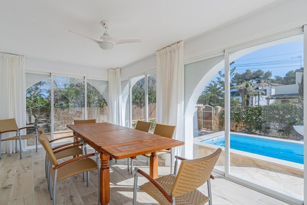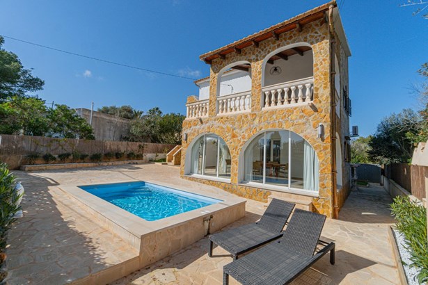 Villa with two apartments, garden, and swimming pool in Cala Santanyí.~~This renovated villa with two apartments is located in Cala Santanyí, offering a privileged setting surrounded by nature and boasting views of one of the most spectacular coves on the island. Just 500 meters from the beach and 15 minutes from Santanyí's old town.~~The property is distributed over two floors, featuring two independent apartments of 95 m² each, both fully renovated, including new plumbing and electrical installations.~~Each apartment consists of a spacious living-dining area, two double bedrooms, two full bathrooms, and an unfurnished kitchen, ready to be customized according to individual needs.~~The outdoor areas have been designed for year-round enjoyment. The ground floor features a large porch with direct access to the living room through a large glass door, while the first floor boasts a spacious terrace with open views.~~The garden surrounds the property, with a swimming pool at the front and a barbecue area with a pergola on the side.~~The attic, currently used for the solar panel system, supplies electricity to the house, but there is potential to convert the space into an additional bedroom with a bathroom. From here, there is access to a solarium with sea views.~~Additionally, the property includes a basement, storage room, and utility space.~~The most outstanding features of this property include aluminum enclosures with double glazing, a solar energy system ensuring energy efficiency, as well as a parking space for two vehicles, air conditioning, heating, a fireplace, and an automatic irrigation system.