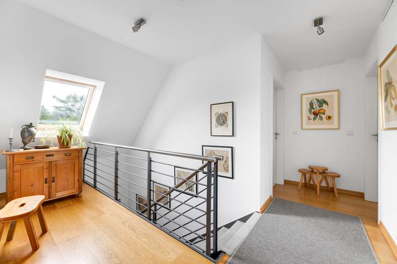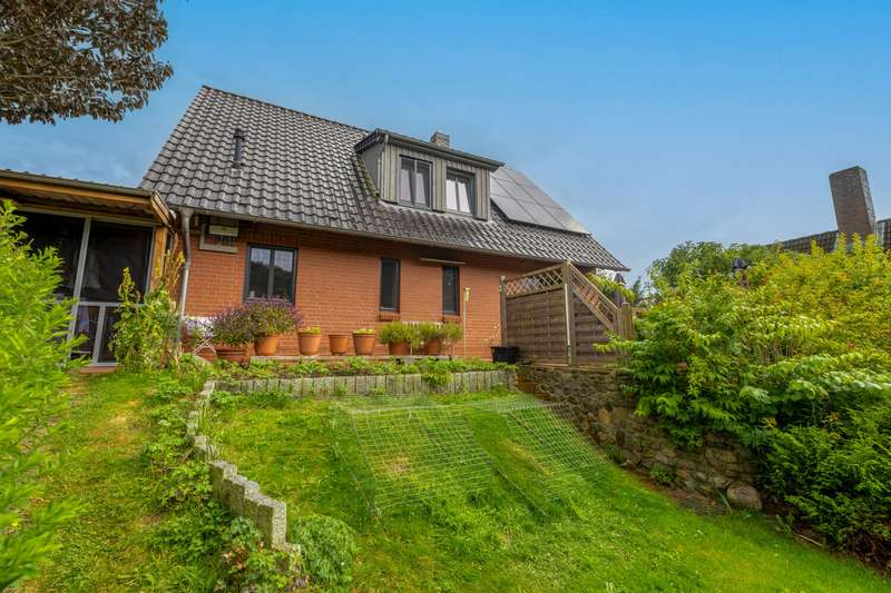 Are you looking for a well-kept, modern and energy-efficient property in a quiet location? Then your search has come to an end. This detached house for sale was built in 2007 on a plot of around 834 m². In addition to its very well-kept condition, it boasts a good floor plan with 5 bedrooms and 2 bathrooms. A highlight is the PV system with approx. 14 kw and corresponding battery storage of 16 kw, which has only been in operation since the end of 2023. The connection for a wallbox is already prepared. Thanks to the income from the additional electricity feed-in, this property is almost self-sufficient in terms of electricity consumption. As the municipality of Hude has its own waterworks, the costs for this are also very low. After entering the house, the spacious entrance hall leads to the living room with access to the terrace on the left. Straight ahead is the guest shower room. To the right is the very large eat-in kitchen, which offers space for a large table. The utility room with separate pantry and direct access to the carport with storage room rounds off the spacious first floor. A modern staircase leads to the upper floor. Here, in addition to the beautiful hallway, a total of 4 rooms for different uses and a full bathroom await the new owners. The attic offers additional storage space. This property is heated by a gas heating system built in 2007 and is suitable for the installation of a heat pump. A corresponding cost estimate is already available. The naturally landscaped garden offers development opportunities for young and old. The offer is rounded off by the large carport with storage room. No investment is required for this property. See for yourself during a personal viewing appointment. We look forward to seeing you.