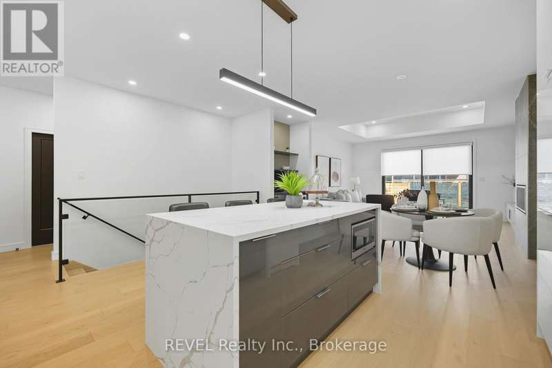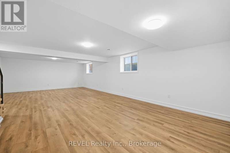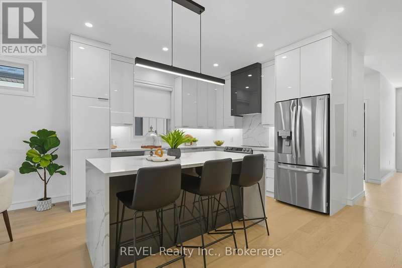 Welcome to this stunning custom-built bungalow in Thorold, designed with style, function, and comfort in mind. The open-concept layout highlights a chefs kitchen with custom cabinetry, painted glass backsplash, a striking quartz double waterfall island, and brand-new stainless steel appliances. An additional espresso bar with wine fridge off the dining area adds the perfect touch for entertaining. The bright living room features a sleek linear gas fireplace and oversized double patio doors (9x8) that flood the space with natural light and lead to a 16x12 wooden deck complete with privacy screening. The main floor offers two bedrooms, including a primary suite with a walk-in closet and a spa-like ensuite boasting a custom double vanity and large glass walk-in shower. A main 4-pc bathroom, mud/laundry room, and Italian tile with engineered hardwood flooring complete this level.The fully finished lower level expands your living space with two additional bedrooms with egress windows, a 3-pc bathroom, and a large recreation area, all finished with durable vinyl flooring. Additional features include battery-powered window coverings on the main floor, an attached single-car garage, and a double-wide driveway. Set in a prime location close to shopping, amenities, and with easy highway access, this home is within walking distance to scenic trails and Lake Gibson Conservation Park. A true blend of modern design and everyday convenience, move in and enjoy! (id:7434)