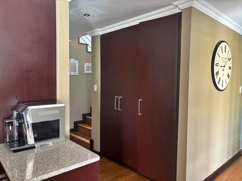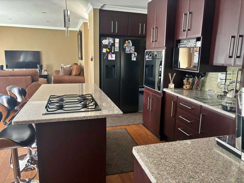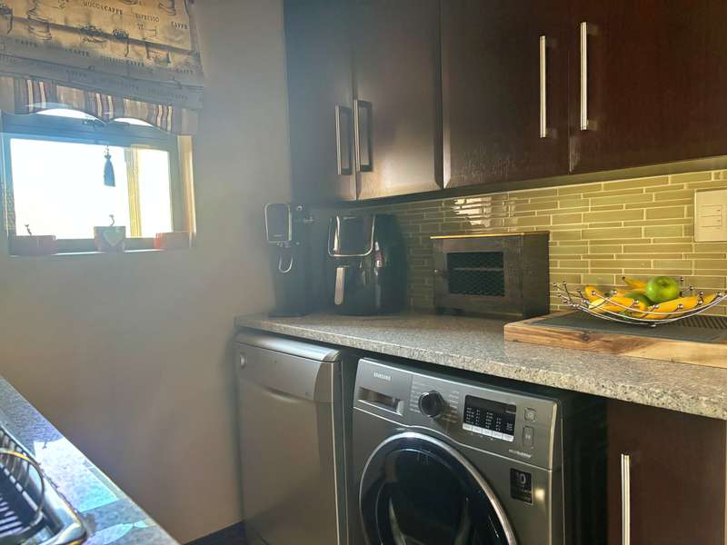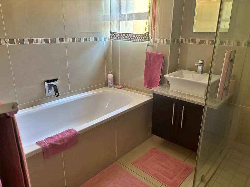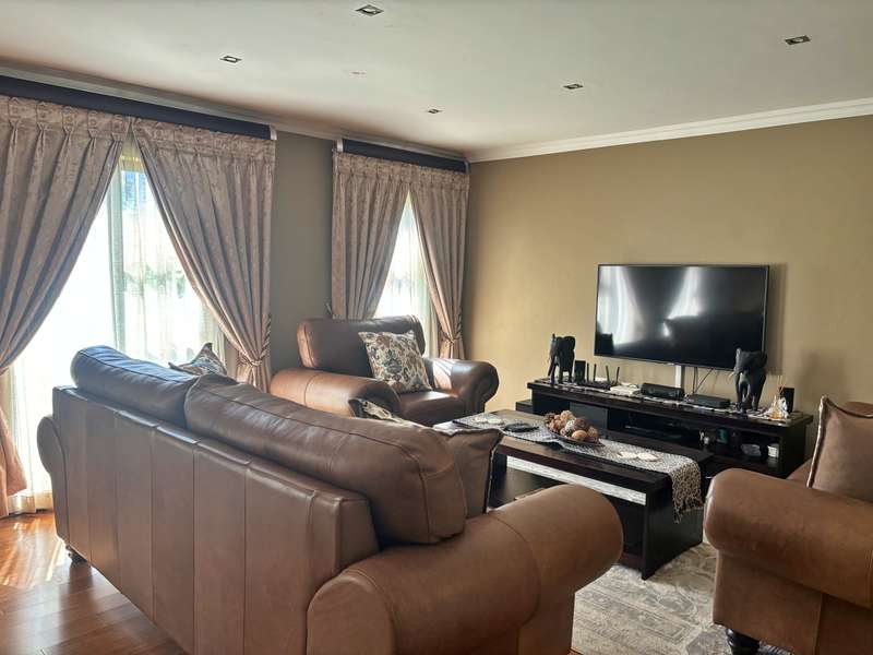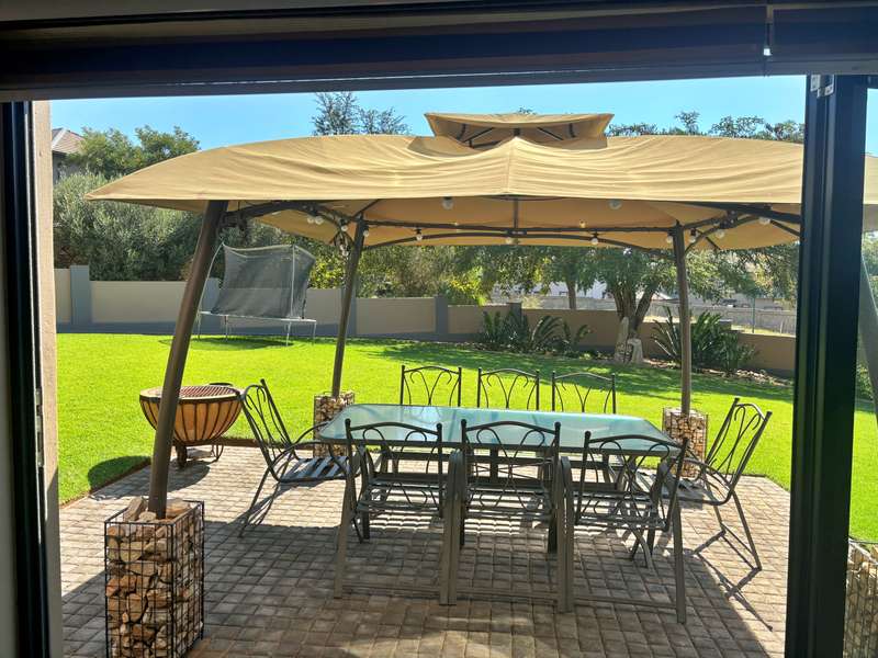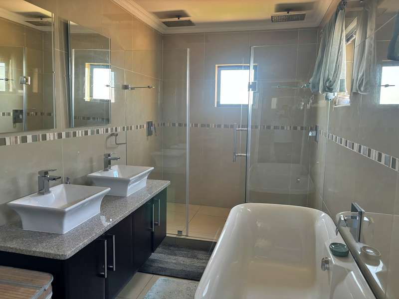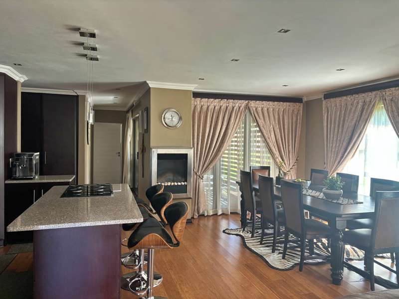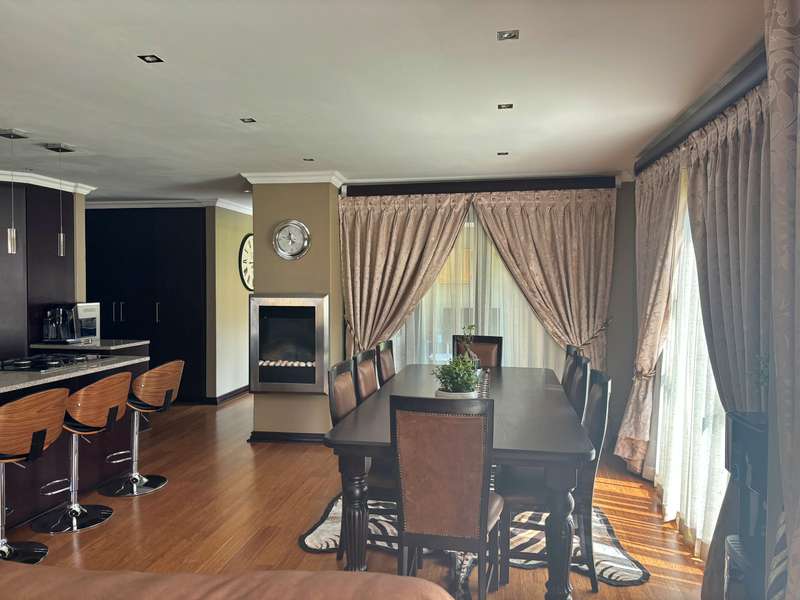 Experience luxury living at its finest in this stunning 4-bedroom house nestled within a picturesque 24-hour security estate. Upon entering, you're greeted by an open-plan living and dining area seamlessly integrated with a modern kitchen boasting ample cupboard space, granite countertops, and a sleek gas stove. A scullery and double garage provide convenience, with direct access into the home. Step into the serene ambiance of an extra sunny room, complete with sliding doors leading out to a meticulously landscaped garden adorned with a charming gazebo, perfect for relaxation and entertaining guests. The ground floor hosts a guest room with an accompanying bathroom. Ascend the staircase to discover three additional bedrooms and two bathrooms. The master bedroom exudes elegance with its lavish ensuite bathroom, walk-in cupboards, and a private balcony offering breathtaking views. Plus, enjoy the convenience of an inverter for uninterrupted power supply. Located in close proximity to excellent private schools, major highways, and popular amenities, this estate offers more than just a home. Residents can indulge in the myriad of leisure facilities including a clubhouse, gym, squash court, and a delightful play area for children. Experience the epitome of luxury living in this idyllic estate retreat.