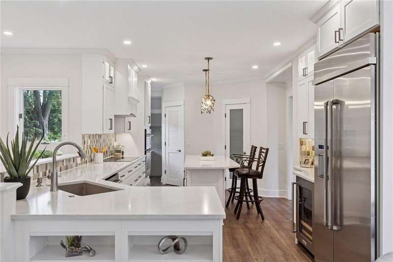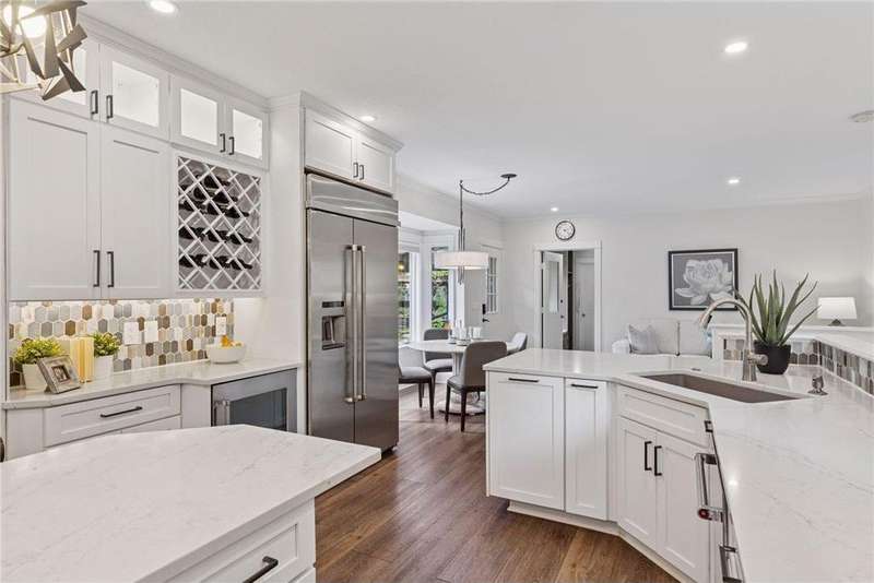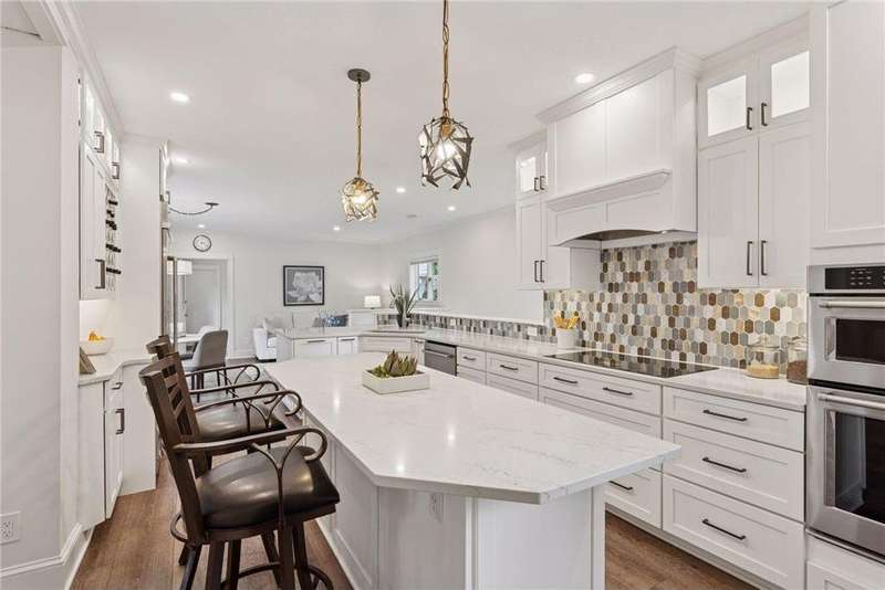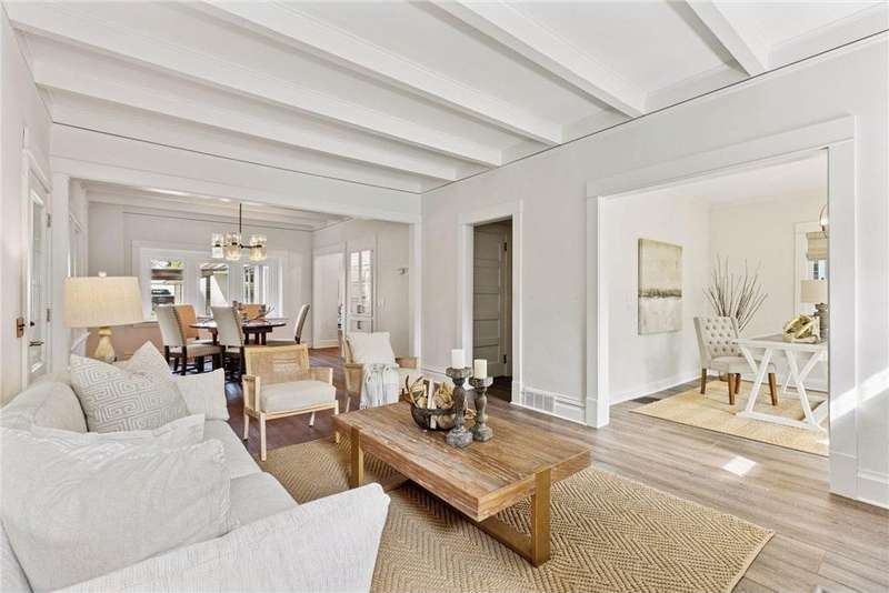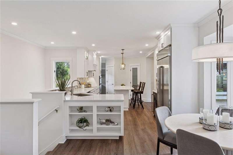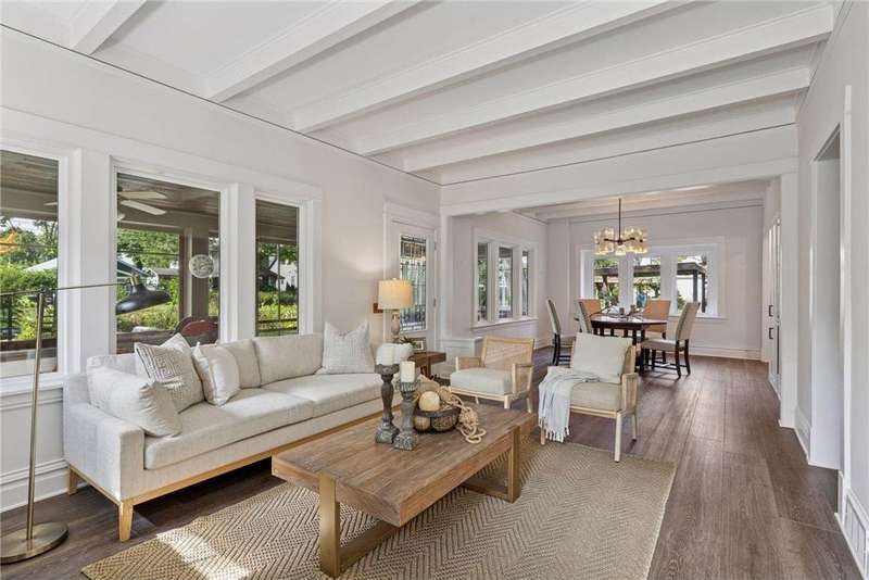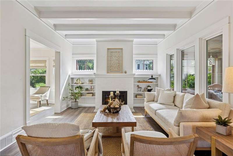 Welcome to this beautifully updated bungalow, ideally located just a block from White Bear Lake and the scenic walking trail along Lake Avenue. Nestled on a rare double lot, this home offers the perfect blend of vintage charm and modern updates. Step onto the amazing front porch, a true highlight of the home, perfect for morning coffee, leisurely book reading, or evening relaxation, with panoramic views of the expansive yard, gardens and patio with grape vines. Inside, you'll find a completely updated kitchen with a pantry, open to an informal dining area and cozy hearth room, the perfect layout for open concept living. The main level also features a formal dining room, living room, den, and main floor laundry for everyday convenience. A true standout is the huge attached garage, offering incredible space for storage, hobbies, or a workshop. The lower level provides a versatile space for another family room, workout space, or however you envision, along with a third bathroom which is perfect for guests or extra living flexibility. Enjoy the unbeatable lifestyle this home offers: walkable to the lake, trails, shops, and restaurants, all while enjoying the comfort of modern updates coupled with the charm and character of an older home. You'll love both the amazing indoor and outdoor spaces!