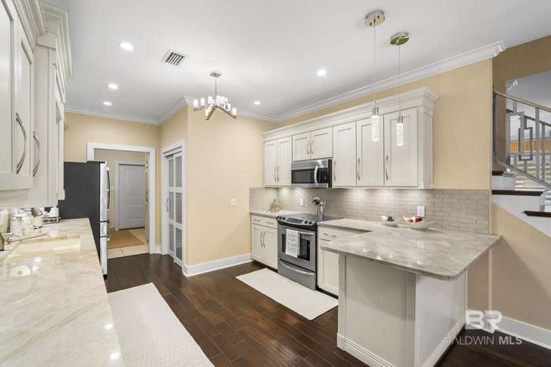 What a beauty! This home has been fully renovated and is MOVE IN ready! No detail has been missed. Taj Mahal Quartzite countertops and custom cabinets in the living room and kitchen which gives the home a light and airy feel. The kitchen has pull out drawers throughout with a mini fridge and stainless steel appliances. Off the laundry room/mud room is the sunroom, which brings extra living space. The primary bedroom is downstairs and offers a closet that is only dreamt about! Custom made railing leads to the upstairs where there are three-bedrooms and one bath. Plenty of closet space and storage throughout the home. Heated and cooled storage closet upstairs along with custom pull out drawers in garage. The backyard is a private oasis and great for entertaining! There is ample parking with two driveways and a relaxing front porch to visit with neighbors. This home is situated in the Lake Forest community, where residents enjoy access to the neighborhood amenities including golf, tennis, swimming and a clubhouse, as well as it is conveniently located close to I-10. Buyer to verify all information during due diligence.