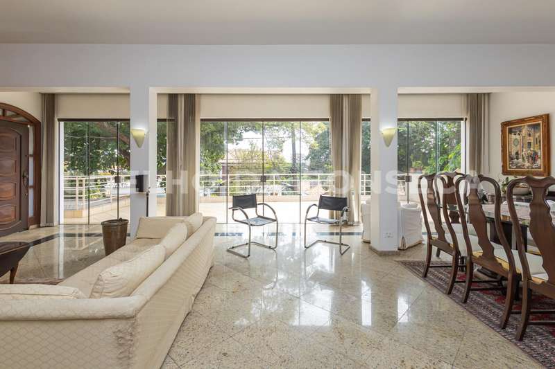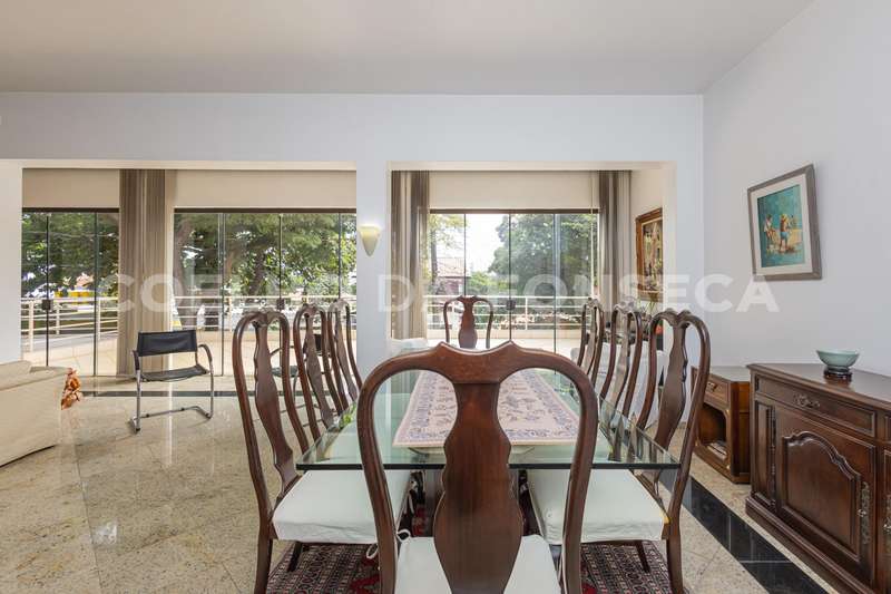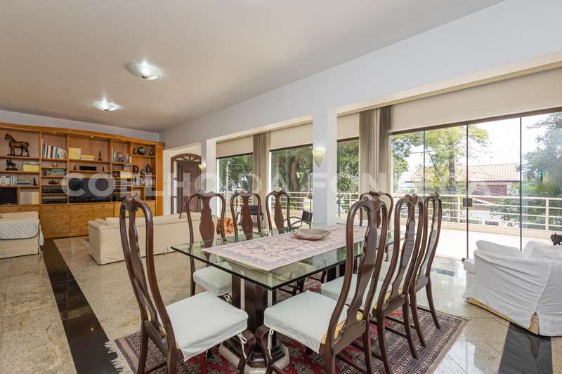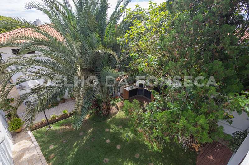 Segundo pavimento: Ampla sala envidraçada com 3 portas duplas em blindex com acesso a varanda, grande e iluminada. cozinha com armários e despensa, lavanderia espaçosa, Quintal amplo com cobertura parcial com telhado Zetaflex(abre e fecha), aréa gourmet social familiar. Edícula com 1 suíte e 1 escritório(mobiliado), 1 sala para fitiness.Terceiro pavimento; 3 dormitórios(sendo 1 suite), todos com ar condicionado, 2 halls e varanda aberta. Rua tranquila e arbórea.