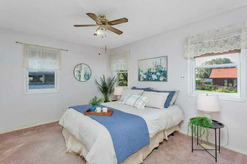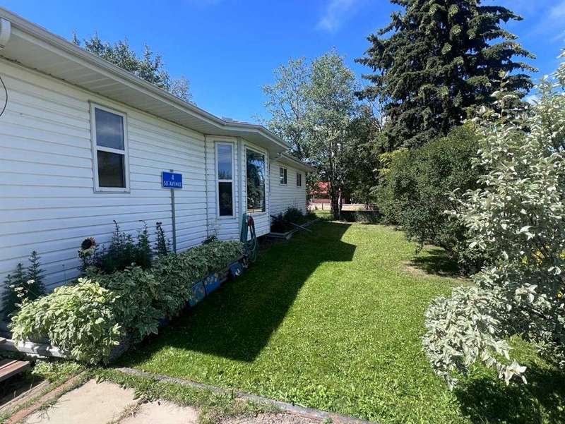 Nestled in the heart of Bluffton, this delightful 3-bedroom, 3-bathroom bungalow offers peaceful, single-level living on a generous 0.27-acre lot. With 1,458 square feet of thoughtfully designed space, this home combines comfort, practicality, and natural beauty—making it a perfect fit for snowbirds, families, or singles alike. The fully landscaped yard is a true highlight, featuring mature trees, including a productive Saskatoon tree, and a large garden ready for your green thumb. The expansive lot provides privacy, shade, and ample room to enjoy outdoor living. Built on 4' ICF block walls, the home includes a crawl space that offers additional storage. Inside, you'll find a welcoming layout with well-sized bedrooms and plenty of space for everyday living and entertaining. Practical features include a private well and connection to the municipal sewage system—at an incredibly low cost of just $64 per year. For those who need extra workspace or storage, the 16' x 24' garage with a wood floor could serve as a handyman’s dream workshop. An additional 12' x 16' shed and ample parking complete the package. Located in one of the most affordable areas in Alberta, Bluffton offers the advantage of lower property taxes and a welcoming community atmosphere. Don’t miss this rare opportunity to own a beautifully maintained home on a large lot, where affordability meets quality living.