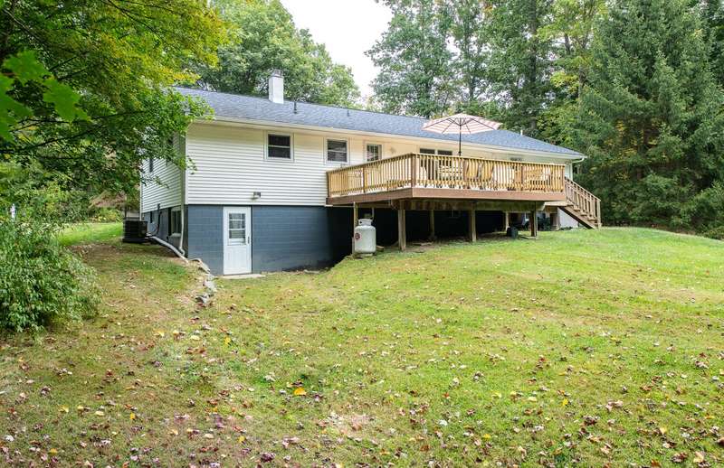 Experience single-level living in all its splendor with this beautifully maintained ranch, privately set on 0.80 acres bordered by mature trees. This unique home stands out from the rest thanks to a thoughtfully designed bonus living area, complete with its own private entrance from the yard, a spacious living space, full bathroom, separate laundry room, and ample storageperfect for extended family, guests, or a home office. The main living area features an upgraded kitchen with granite countertops, stainless steel appliances, a center island, and custom cabinetry, making it a true centerpiece of the home. The spacious living room flows effortlessly into three generously sized bedrooms, all with hardwood floors hidden beneath the carpeting, and a second remodeled full bathroom.All of this is conveniently situated on one level, offering ease and accessibility throughout. Below, the full unfinished lower level offers approximately 1,600 square feet of additional space with high ceilings, a walk-out to the backyard, a second laundry area, and endless potential for future expansion or storage. Step outside to a large deck overlooking the peaceful, tree-lined yard and enjoy warm-weather fun in the above-ground pool.Located just minutes from Metro-North, the Culinary Institute of America, the Hudson River, Vanderbilt and Roosevelt Mansions, scenic hiking trails, farm stands, restaurants, and all the cultural and natural beauty Hyde Park and the Hudson Valley have to offer, this home combines comfort, functionality, and a prime location in one exceptional package.