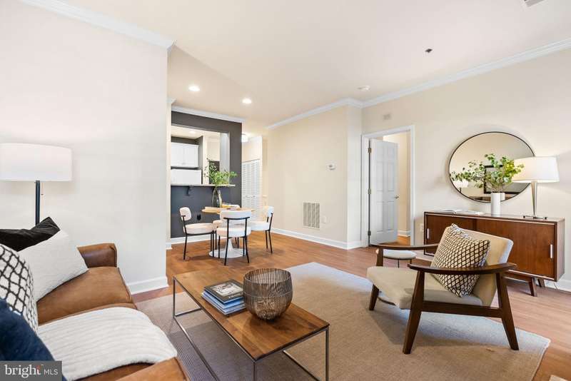 In the heart of Courthouse yet tucked away in a quiet courtyard, this rare one-bedroom condo offers a lifestyle that feels both serene and connected. Morning light pours through soaring ceilings onto newly-installed luxury vinyl wood floors, while custom designer paint creates a fresh, sophisticated backdrop throughout. The perfectly sized balcony becomes your cozy retreat for coffee, evening wind-down, and garden views that reset your day. Inside, the open floor plan flows with purpose-from the inviting living room anchored by its gas fireplace to a proper dining space for entertaining, then into a kitchen where granite countertops and 42-inch cabinets make every meal preparation feel effortless and inspired. Secured garage parking provides convenient covered access, while thoughtful amenities elevate routine living: pool for summer relief, fitness center for morning workouts, club room for hosting friends, secure package room with 24/7 delivery access and key fob entry, and professional onsite management. Step outside and the city becomes your neighborhood-Metro for downtown commutes, Whole Foods and Trader Joe's for weekend errands, coffee shops for remote work, quality restaurants for date nights, and the movie theater for easy entertainment, with Clarendon's energy and DC access just minutes away. A home that balances urban convenience with the kind of quiet sophistication that makes coming home the best part of your day. Won't last - make your showing appointment today!