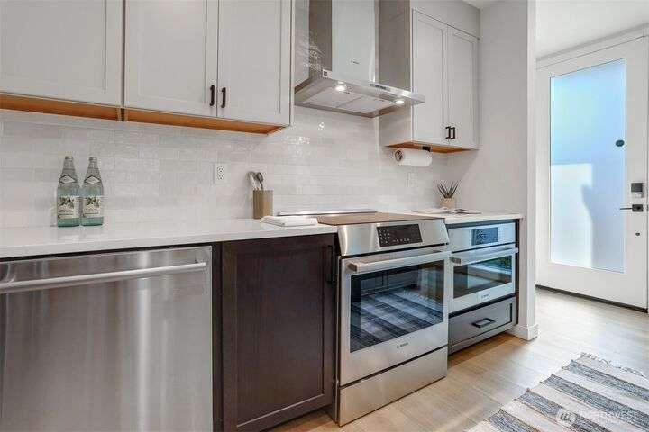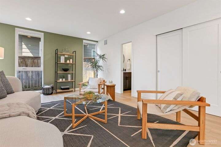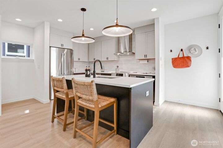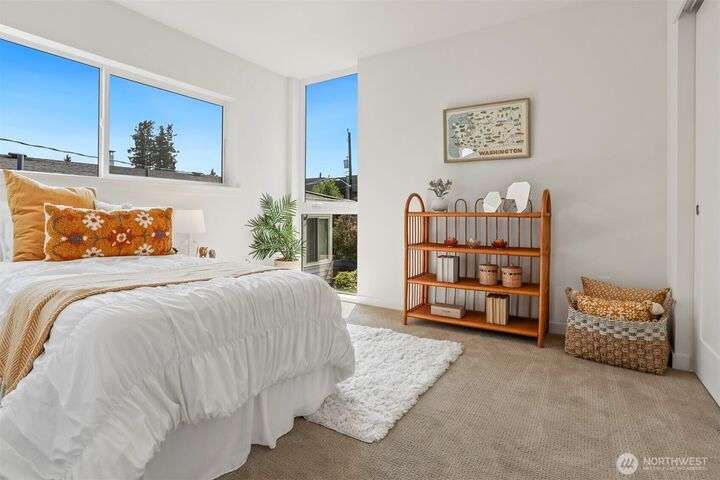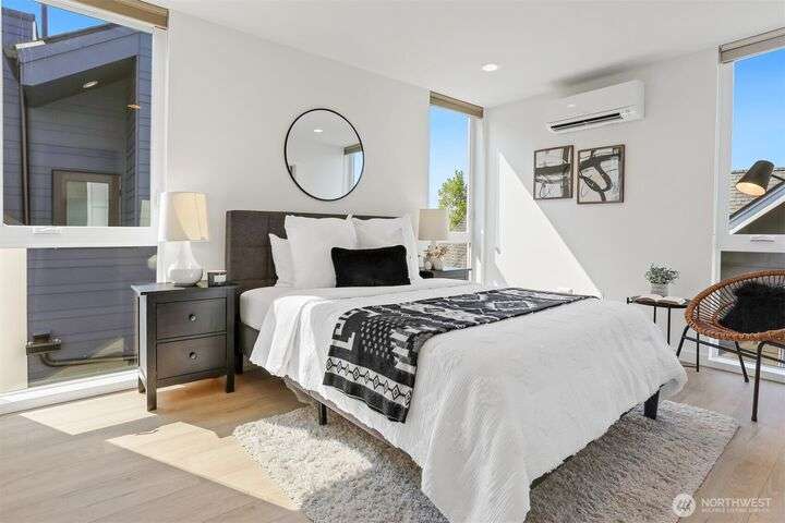 In the vibrant heart of Ballard, this 2023 stand-alone home shines with modern elegance and light. Crisp lines and luxury finishes frame an airy, open design. Five upstairs bedrooms create effortless flexibility, while the top-level primary suite offers a spa-like bath and a spacious walk-in closet. Rise above it all on your sun-drenched rooftop deck where city and mountain views invite you to gather, unwind, and savor every moment. Off-alley parking includes EV charger. Located just one block from the Ballard Community Center and just steps away from restaurants, coffee shops and, grocery stores, this home has everything you need for comfortable and convenient living!