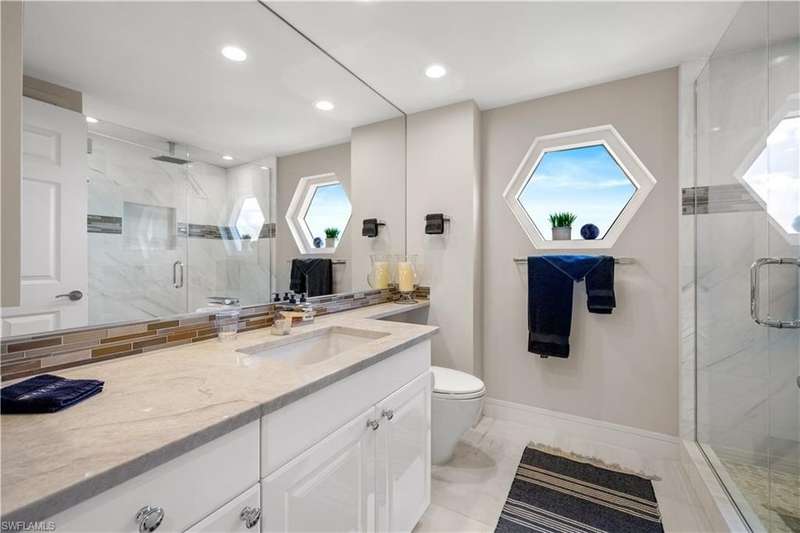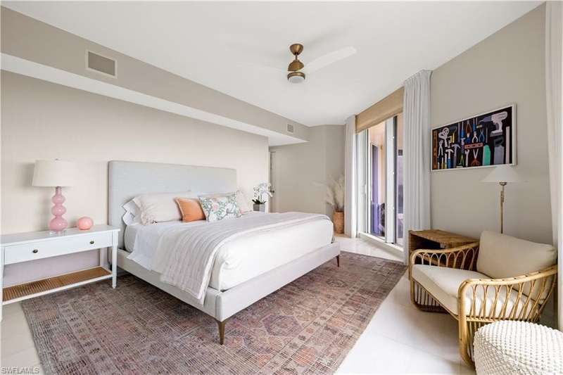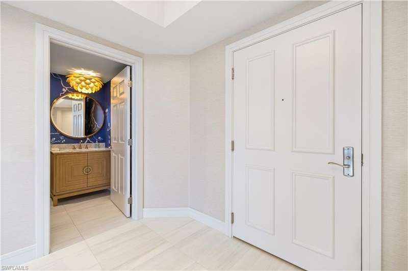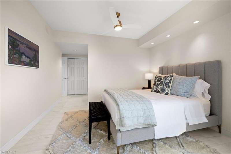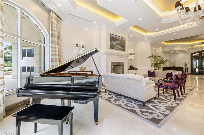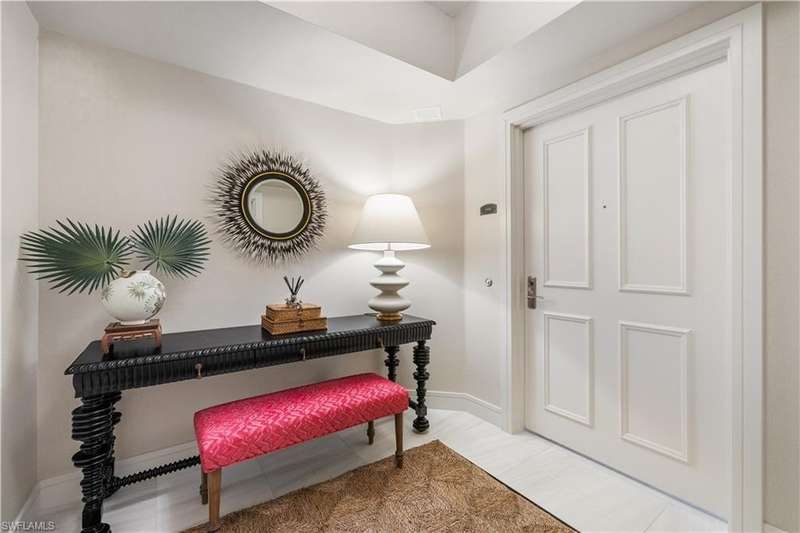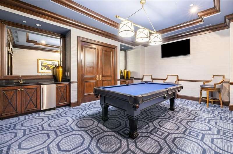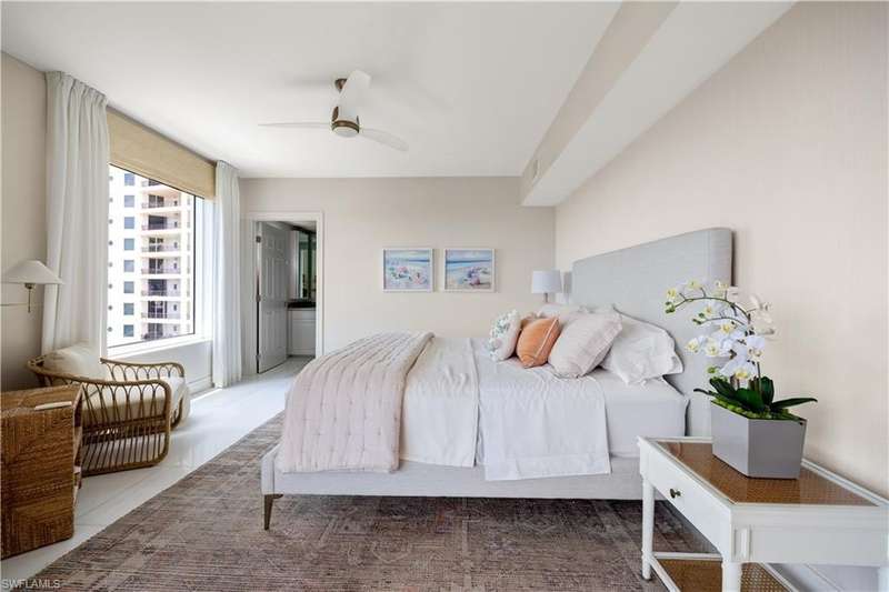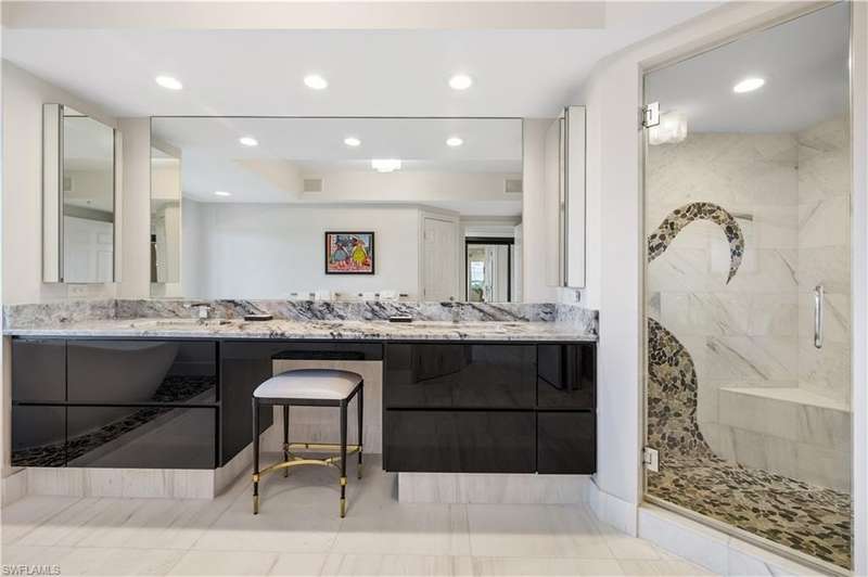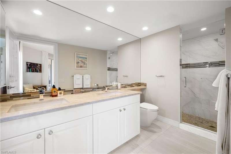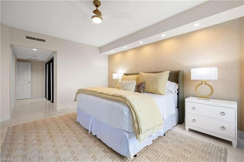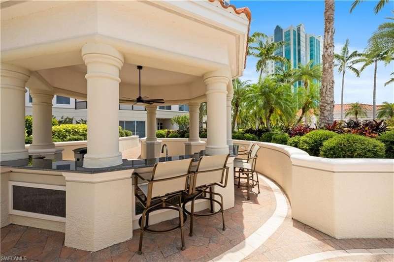PRIME LOCATION! Located in one of the most desirable buildings within Pelican Bay, The Montenero, this 10th-floor "08" stack residence has been beautifully remodeled, offering 3400 sq.ft. under air; 4040 sq. ft. total area, marble floors, 9 ft. ceilings, 3 bedrooms, 3.5 baths, den/library, spacious living room, open kitchen, family room, and 2 large lanais. The 31-foot screened lanai has uninterrupted expansive Gulf and sunset views all year and upgraded metal electric shutters for storm protection. As you enter this residence, you immediately enjoy beautiful views from every room! The open living area has a comfortable upholstered couch, accompany chairs, and lovely art. The rectangular dining table seats 8. The well-equipped and updated kitchen has granite countertops and bar area, quality appliances, a round glass table and dining for 4, and an adjoining family room with a comfortable L-shaped couch, chairs, and TV. The primary suite features a king-size bed, sitting area, custom-designed closet, TV, spacious private bath with dual vanities, walk-in shower, and a soaking tub; easy access to the spacious screened lanai with comfortable seating. The 1st guest suite offers a king-size bed, matching end tables, dresser, walk-in closet, tv, ample natural light, private bath with a walk-in shower, and easy access to the open-air balcony with eastern views of the bay, and lush landscaping. The 2nd guest suite offers a queen-size bed, spacious closet, tv, and a private bath with a walk-in shower. No corridors to your front door - elevator opens into the residence foyer. Two deeded under-building parking spaces: A private garage for storage, and an open parking space are included. Montenero amenities include a movie theatre, sunny pool and hot tub area, 5 guest suites and 24-hour front desk attendant. Pelican Bay residents enjoy access to miles of sandy beaches, two beachfront restaurants, a staffed fitness center and two tennis pavilions. Pickleball is coming! The property is conveniently near Artis-Naples, Waterside Shops, Mercato Shops, and various dining establishments.