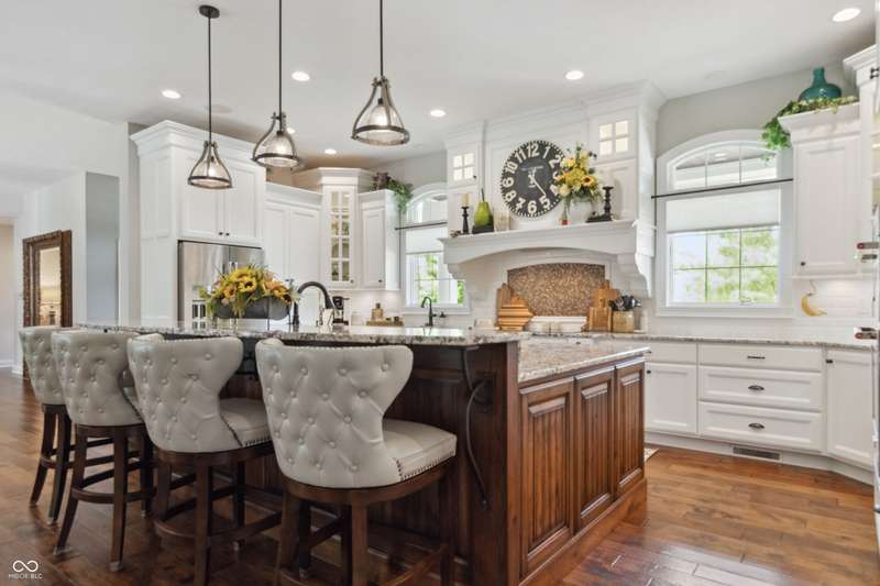 A One-of-a-Kind Luxury Escape: Step into the unparalleled elegance of this Custom Built masterpiece by Bob Craig of Classic Homes built for the ultimate empty nester lifestyle. Nestled on a sprawling 1.4-acre lot, masterfully landscaped featuring: Concrete edging, Professional outdoor lighting, inground sprinkler system, amazing plants, bridge and a built in swing for ultimate escape & relaxation. This Home offers the perfect blend of luxury, comfort, and state-of-the-art amenities designed for empty nesters. Gourmet Kitchen: Experience the joy of culinary creations in a kitchen outfitted with high-end Bosch & KitchenAid appliances, an induction cooktop, dual sinks, and exquisite custom Amish cabinetry by Stoll Woodworking with thoughtful placed mixer stand cabinet, dual trash bins, and beautiful granite countertops. The pantry that comes with ample built cabinets to make organizing a dream. Outdoor Paradise: Relax in the oasis of your private heated inground saltwater pool, with an automatic cover, stamped concrete with plenty of space to add a Pool house with bathroom and outdoor kitchen. Expansive Garage & Oversized dual entry driveway, Portico and RV Pad: A generous four-car oversized 1,299 sq ft Finished & heated garage with epoxy flooring. Luxurious Living Spaces: The interior features soaring 10', 9' & tray ceilings, creating an airy ambiance. Each room is adorned with top-quality finishes. Master Bedroom/Bath - His & Hers Closets and Vanities, Tile Shower with Rain-head and Large Soaker Tub. Entertainment & Relaxation: A Flex space currently used 24' x 28" man cave or could be additional Hobby 2 car garage or dedicated office suite, or cozy up in the sunporch with automatic screens and a fireplace. Additional features: Sonos sound system, wet bar, wine refrigerator, coat lockers, Custom Drapes, Plantation Shutters, Remote Control Blinds, All TV's including outdoor patio TV, Outdoor Furniture - Front Porch, Portico chairs & tables,