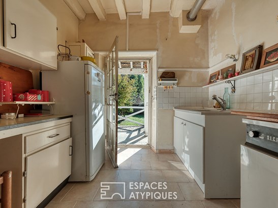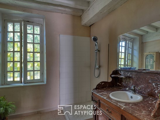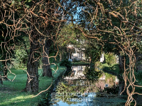 Outside, a wooded plot reveals a peaceful atmosphere. The terrace welcomes outdoor meals, while the fishpond, fed by a spring and bordered by vegetation, gives the garden a rare bucolic ambiance.