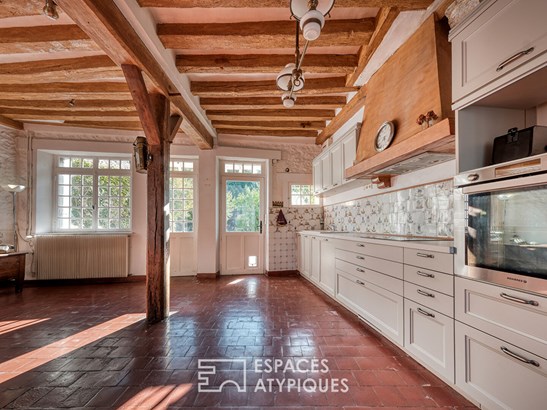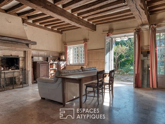 Located 100 km from Paris, in the heart of a green environment, this unique family home, a blend of heritage and character, offers nearly 240 sqm of living space spread across two adjoining buildings, each with its own independent entrance.