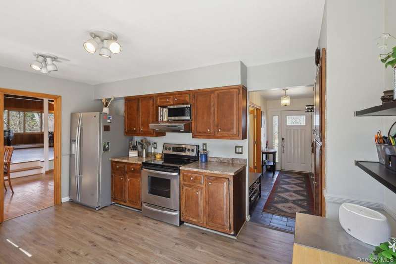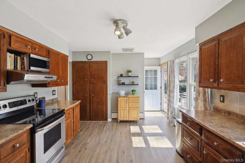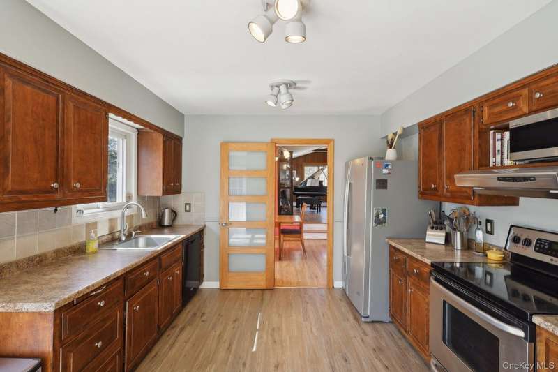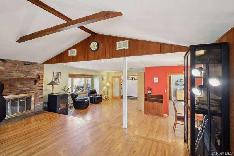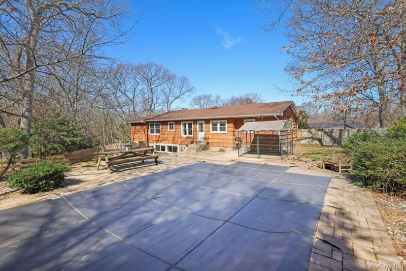 Nestled among mature trees this charming spacious three-bedroom, two-bath ranch offers the perfect blend of comfort and privacy. Step inside to find hardwood floors bathed in natural light, courtesy of high-quality Anderson windows throughout. The open-concept living and dining areas provide a warm and inviting atmosphere, perfect for both relaxation and entertaining. Other upgrades include stainless steel appliances, updated primary bathroom, recent natural gas conversion, central air conditioning, and a 220 electric volt charger for your electric car. The finished basement offers additional living space - ideal for a home office, media room, gym or play area. Outside you will find an in-ground pool surrounded by an updated patio. Over a half-acre of property. Fully fenced in yard. All right in the heart of Setauket! Water, lawn care, and pool maintenance included in the $4800 rent.