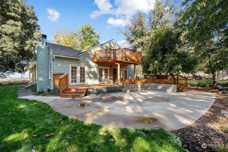 69.7-Acre Ranch-Historic Significance-Modern Amenities- originally the McCaw homestead, meticulously renovated offers a serene oasis, cool in the summer and warm in the winter, New perimeter & exterior fencing, replaced main irrigation line, rehabilitated barns with new lofts, roofs, and upgraded irrigation pump and service size. New Vinyl windows, refinished floors, granite countertops, new roof (2023), deck, veranda, and patio. Exterior house painted in 2023, new domestic well. The property boasts black locust, honey locust, walnut, oak, filbert, chestnut, various fruit trees, and ornamental plants. Home to deer, coyotes, pheasants, quail, birds of prey, squirrels, herons, herd of elk. Sustainable Practices have been use. Call details.