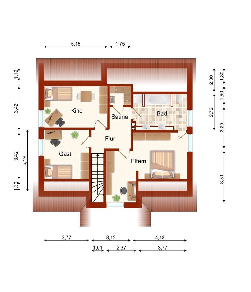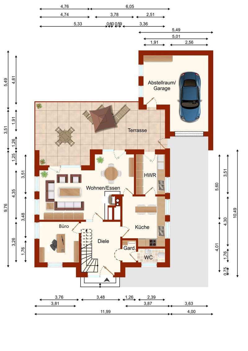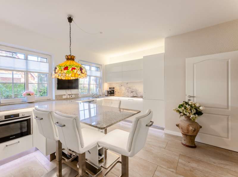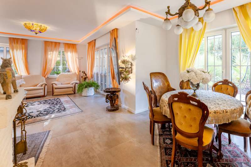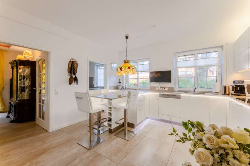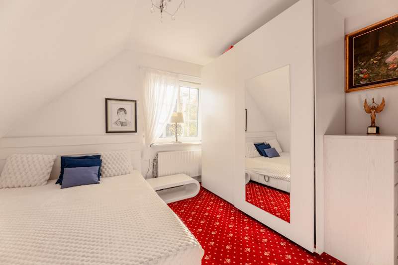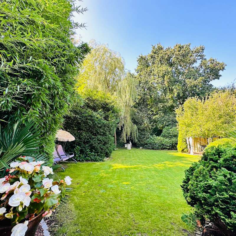 This extremely well-kept detached house was built in 1985 in solid construction in a cul-de-sac location and impresses with its well thought-out room layout and the extensive and very elaborate modernization measures carried out over the years. The following are just a few examples: - The new gas heating in 2015 - 2019 the complete first floor with floor coverings, white interior doors, electric shutters, the guest WC, the high-quality fitted kitchen - 2022 Renewal of the driveway - 2023 Installation of the PV system (6.56 kWp with 9.6 kWh battery storage, rented against feed-in tariff) - 2024 New roof coating A spacious entrance hall leads to the modern guest WC on the right and the house office on the left, which can of course also be used for other purposes. Straight ahead, through the double doors, you enter the spacious living/dining area with open fireplace and access to the partially covered terrace. From here, as well as from the hallway, you can access the beautiful and exclusively equipped kitchen with counter and Miele hob extractor fan. Generous work surfaces invite you to cook or bake together. On the upper floor, the new owners will find 2 very nice children's/guest bedrooms, as well as the master bedroom with a separate area for versatile use and direct access to the large full bathroom with complete fittings including a double washbasin. The bathroom, which is preceded by a modern infrared sauna, can also be accessed from the hallway on the upper floor. The attic is well insulated, fully boarded and thus offers additional storage space. The outdoor area, with its partially covered terrace, has been lovingly landscaped, has been grown in so that it is opaque and, in addition to the garden shed, offers a beautiful pavilion area and plenty of space for children. The spacious garage with electric door, wall box and PV system along with battery storage rounds off this attractive offer. A personal viewing will convince you of the quality of the property and its extremely well-kept and energetically good condition.