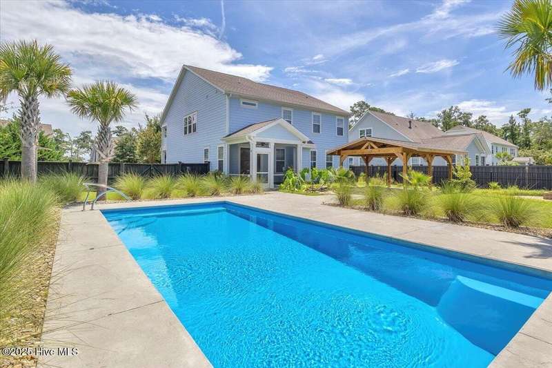 Welcome to 13009 Bending River Way, a rare opportunity in the exclusive, gated section of Hawkswater at the Riverhome to only eight residences with this level of privacy and river access. This beautiful 4-bedroom, 3-bath Harbor Oak floor plan includes a deeded 25-foot boat slip in the private marina, offering easy access to the Cape Fear River and just a short boat ride to downtown Wilmington. The open-concept layout is ideal for entertaining, featuring a gourmet kitchen with granite countertops, stainless steel appliances, a large island, walk-in pantry, and butler's pass-through to the formal dining room. The main level also offers a spacious living room with gas fireplace, informal dining area, and a full guest suite.Upstairs, the owner's suite includes a private sitting room, spa-like bath with oversized shower, and a walk-in closet with direct access to the laundry room. Two additional bedrooms, a full bath, and a versatile loftcurrently used as a theater roomprovide space for work or play. A second-floor balcony offers peaceful peekaboo views of the river and a quiet place to unwind.Step outside to your own backyard oasis with a private in-ground pool surrounded by palm trees, a covered patio, and a dedicated area for gathering and relaxing around a fire pit. The property also includes a prewired shed and a fenced yard for added privacy.Community amenities include a clubhouse, pool, fitness center, marina, and gated access to Belville Riverwalk Park with scenic trails and a riverfront gazebo. Located just minutes from historic downtown Wilmington, this home offers the perfect blend of comfort, convenience, and coastal lifestyle.