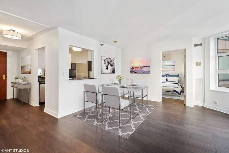 Delightfully located in Streeterville, this bright home features large bay windows, an open kitchen, hardwood floors, and fresh neutral paint. Utilities include everything except electricity. Parking additional. Luxury amenities include two sun decks, indoor pool/spa, fitness center, bike room, and 24-hour door staff. Laundry FL 2. Prime location steps to the Mag Mile, lakefront, Riverwalk, Navy Pier, Northwestern, CTA, shops, dining, and so much more!