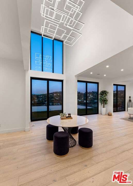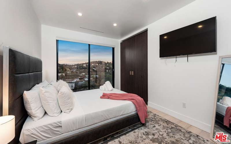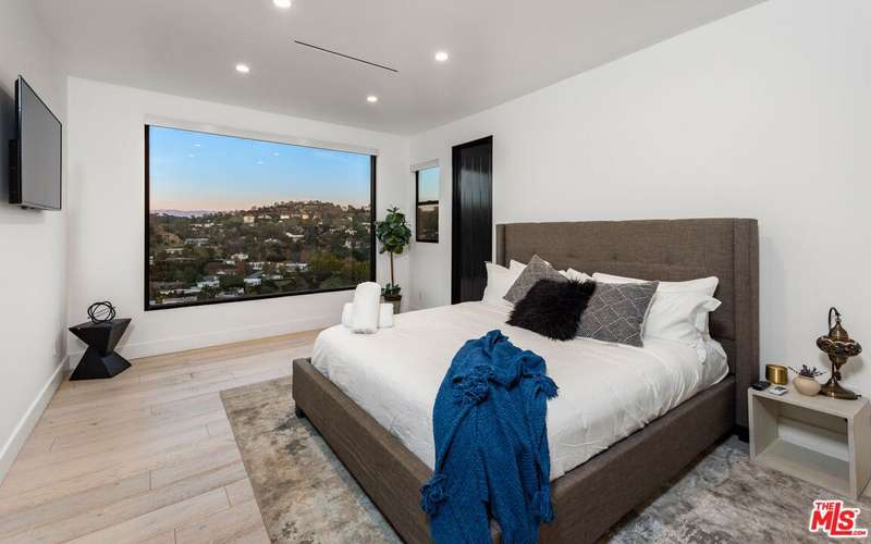 Available fully furnished and turnkey for short, midterm, or long term lease! Located in the heart of Hollywood Hills on a quiet street in the exclusive Mt. Olympus neighborhood. Just minutes away from sunset strip, this newly built luxurious modern masterpiece is the perfect dream home. Whether you seek thrills of Hollywood or prefer a quiet night at home w/ stunning views, this setting allows for access to all types of enjoyment and relaxation. Luxurious front entry pivot door opens to a bright open floor plan w/ hardwood floors & floor-to-ceiling Fleetwood glass leading to enormous 2,000 sq. ft. deck w/ jaw dropping zero-edge infinity pool/spa floating into the canyon. Perfect for indoor-outdoor entertainment w/ surround sound throughout the home. Master chef's kitchen, huge marble kitchen island, top-of-the-line appliances & Custom cabinetry from Italy. Home offers four bedrooms upstairs plus movie theater & sauna downstairs. Master suite features romantic fireplace, private deck, Spa like master bath & enormous dual walk-in closet. Canyon views from every room.
