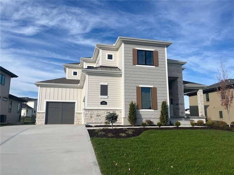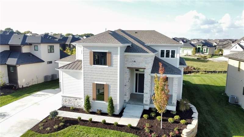 BRAND NEW PLAN: MUST SEE 1.5 Story with split car garage, the Birmingham II by SAB Homes located on Lot 165 is ready for MOVE IN! From the moment you step into the grand entry, you will be delighted by what you find. The large great room with tile trimmed walls, side cabinets and plenty of windows with a soaring 2-story ceiling. The kitchen is made for a chef, with a 5 burner gas cooktop, convection oven, large quartz island, walk-in pantry with prep kitchen with a 2nd convection oven & 2nd sink! Enjoy a large dining room with built in hutch wall and sliders to enjoy your covered patio. The main floor primary suite is a calming retreat with double vanities, walk-in shower, freestanding tub, plus a large walk-in closest with its own laundry hook-ups. The upper level features a unique loft for gaming or craft room at the top of the stairs with plenty of natural light. There is a space for everyone with four bedrooms upstairs, each with a walk-in closet. plus a second floor laundry room with a sink. The best part is the split garage with added room for storage. Outside features a large front porch with real stone trim, beautiful rock wall, landscaping and sprinkler system. Enjoy the large level backyard ideal for pool or easy main level access form the covered back patio. Century Farms neighborhood has a spectacular club house with a fitness center and resort style swimming pool with slide. There are plenty of neighborhood activities with a fire pit, two pickleball courts and a basketball hoop, farm themed animal kids play area and a community garden. Century Farms is conveniently located near the brand new Bluhawk shopping center, Heritage Park, the Johnson County Trail system and the Overland Park Arboretum. Come join the fun in Century Farms, a unique one of a kind upscale new home community in Overland Park. BLUE VALLEY SCHOOLS