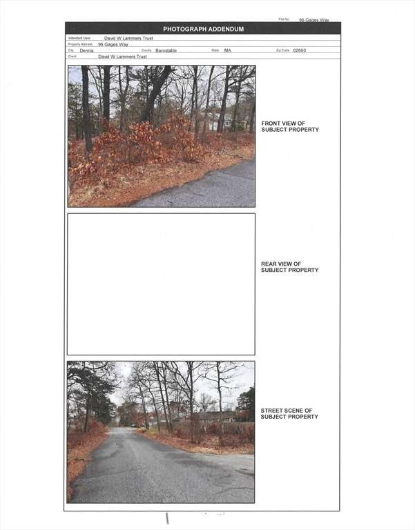 Attention builders or buyers interested in new construction. Build your Cape house in the rear buildable area, on this "pork chop" shaped 1.34 acre residential lot, in an established neighborhood of single-family homes. The buildable area is set well behind the home at 100 Gages Way, and is approx. 179' x 163'. Connections to town water, natural gas, electric, and cable/internet are at the street. The lot is centrally located to the beaches on the Nantucket Sound side and the Cape Cod Bay side, and is close to shopping and restaurants, with quick and easy access to Rt 6.