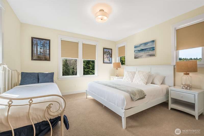 Discover Little Green, a charming retreat nestled on a spacious quarter-acre Garden Lot in Seabrook’s Fernwood neighborhood. Located between a tranquil forest and Meadowview Park, this home offers a nostalgic interior with pops of whimsical color and direct access to nature. The large, covered front porch with park views leads into the open-concept living area. This thoughtfully designed house offers four spacious bedrooms, each with an ensuite bathroom, providing comfortable sleeping spaces on both the main and upper floor. Three of the home's four and a half bathrooms feature vibrant tiled walk-in showers to add a touch of cheerfulness. Above the two car garage & carriage house offers an additional bedroom, kitchen & living space.