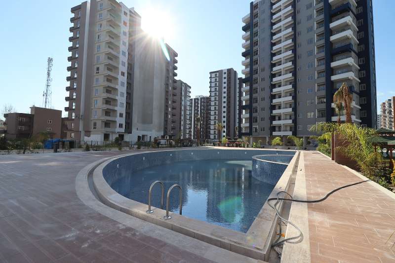 The properties in Erdemli with sea views are located in a compound with 8.100 m² plots of land. Here, there are 3 14-storey blocks along with rich social amenities. All residents can benefit from the aquapark, outdoor swimming pool, playground, outdoor parking, lift, generator, 24/7 security service, and security cameras.