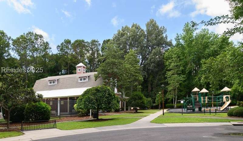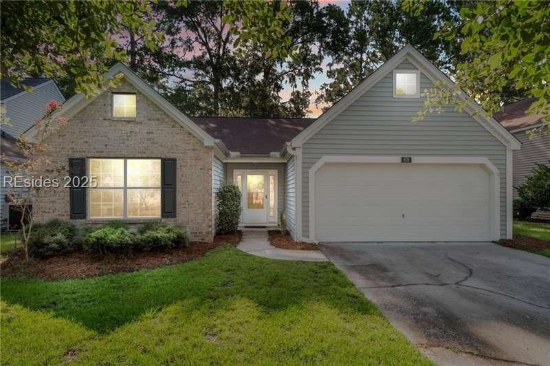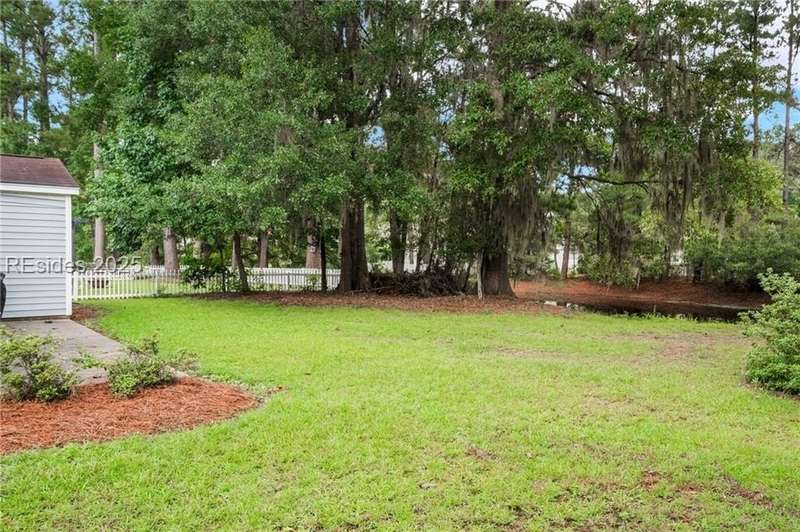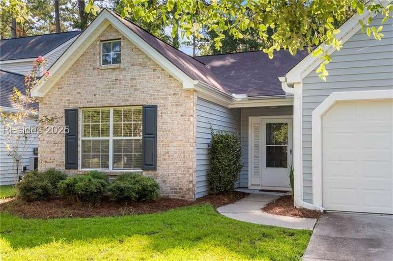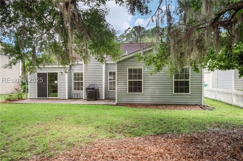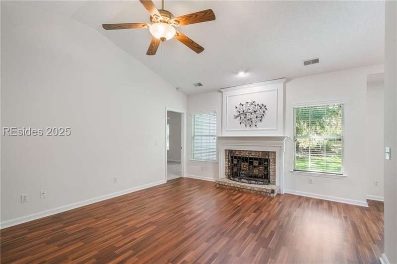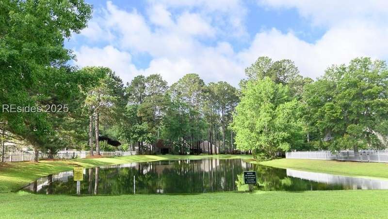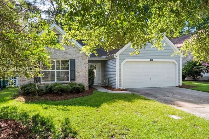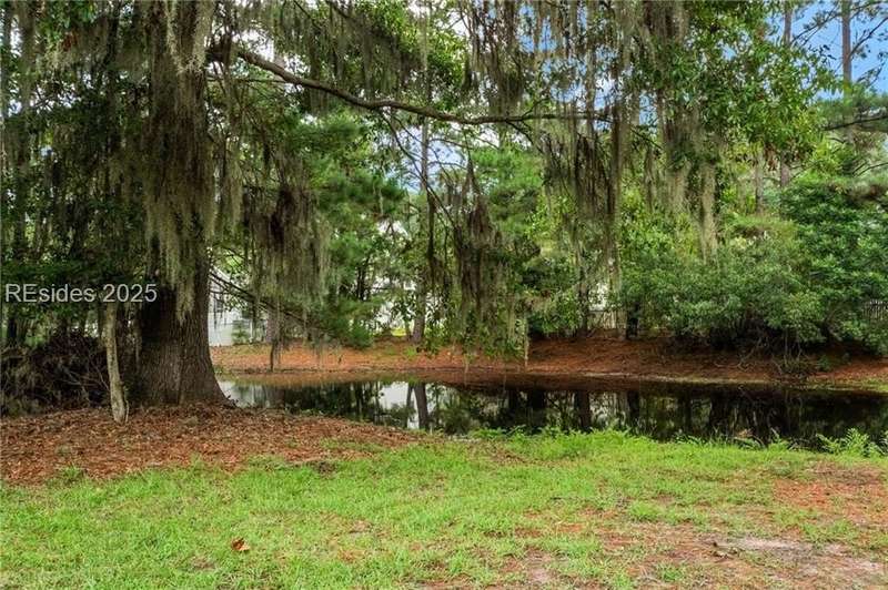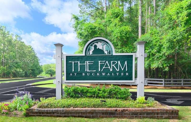 Charming 3 bedroom home overlooking a small lagoon in the Farm. This home features a foyer entrance into the great room which has cathedral ceilings, fireplace, ceiling fan and hard surface floors. New carpet in the primary bedroom with a walk in closet and ceiling fan. The eat-in-kitchen features newer appliances, laundry closet, slider to the back yard and access to the 2 car garage. The Farm features a community pool and clubhouse and quick access to the public schools and Bluffton recreation center.