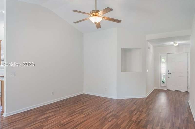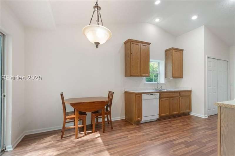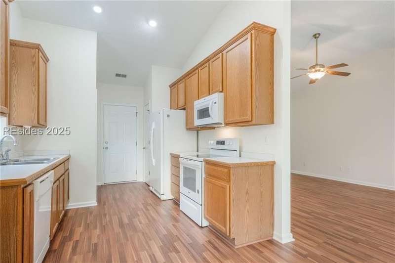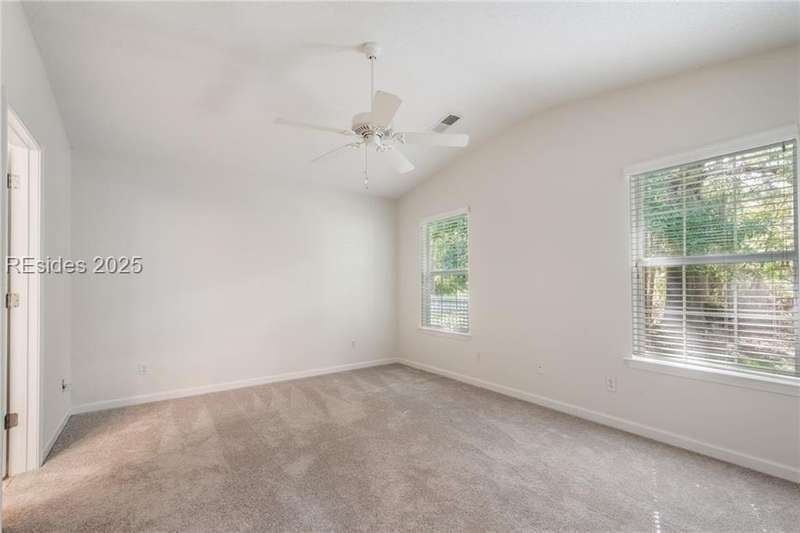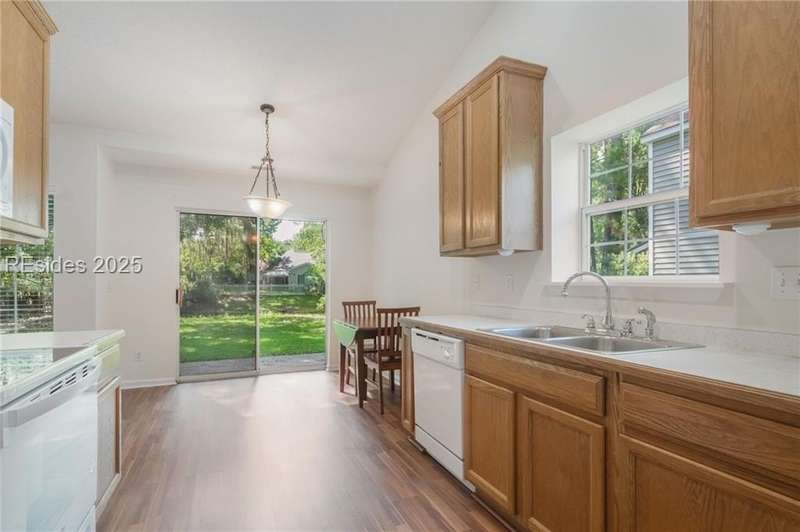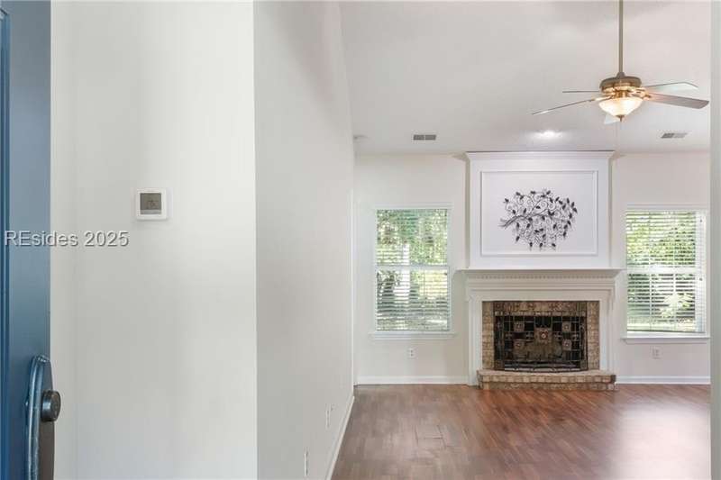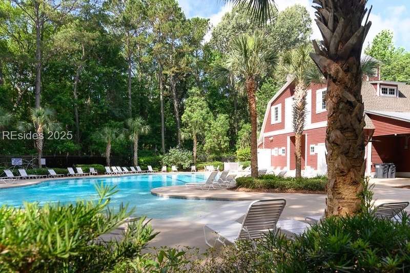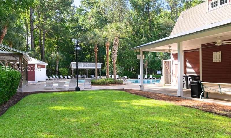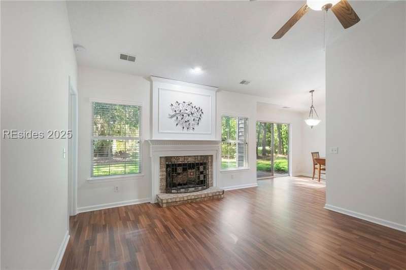 Charming 3 bedroom home overlooking a small lagoon in the Farm. This home features a foyer entrance into the great room which has cathedral ceilings, fireplace, ceiling fan and hard surface floors. New carpet in the primary bedroom with a walk in closet and ceiling fan. The eat-in-kitchen features newer appliances, laundry closet, slider to the back yard and access to the 2 car garage. The Farm features a community pool and clubhouse and quick access to the public schools and Bluffton recreation center.