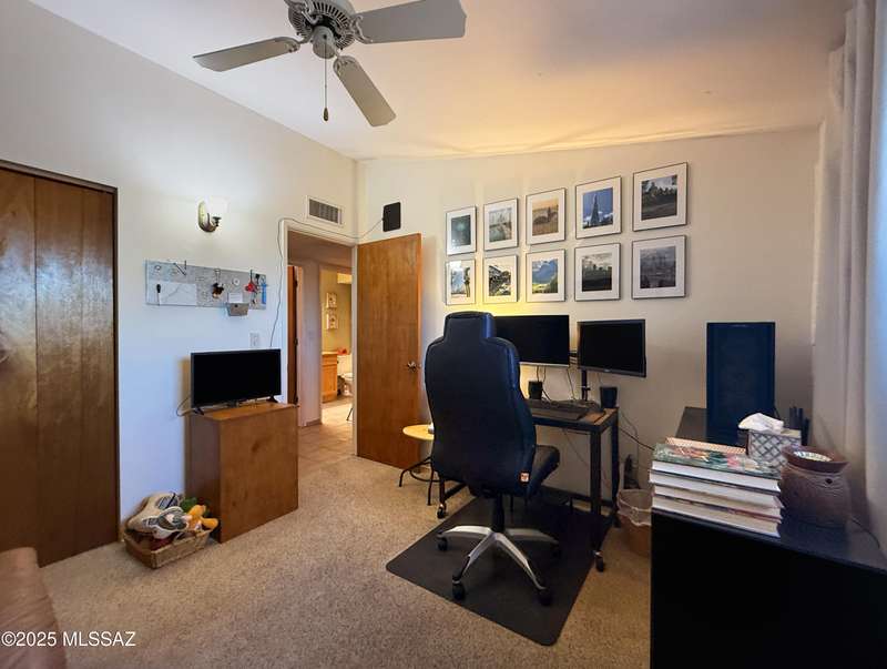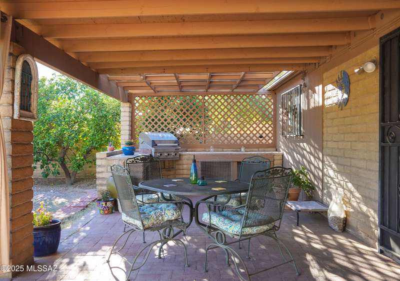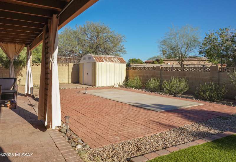 Welcome to this charming ranch-style home, perfectly situated on a generous lot just minutes from schools, parks, and major roadways-yet tucked away on a peaceful cul-de-sac. And did I mention, NO HOA! The real highlight of this home is the backyard, featuring a full-length covered patio, extended pavers, a concrete slab pre-wired for a spa, a storage shed, built-in BBQ, and lush turf. Imagine spending your days and evenings relaxing or entertaining family and friends in this inviting outdoor space. The yard also includes a dog run and a block wall featuring a large metal gate that opens to the back alley. This home's appeal continues with a newer roof that includes a transferable warranty and the added savings of owned solar panels. Inside, you'll find vaulted ceilings, a spacious